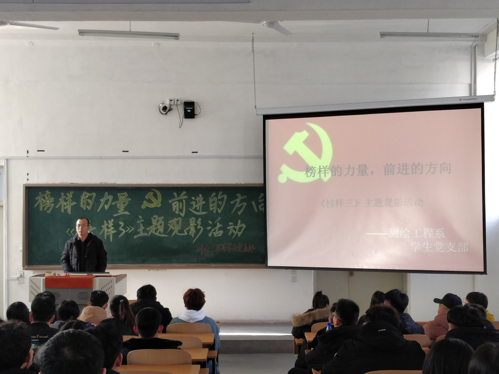 为深入学习贯彻习近平新时代中国特色社会主义思想和党的十九大精神,深入推进“两学一做”学习教育常态化制度化,树立优秀共产党员楷模,发挥先进典型示范作用。2018年12月10日,测绘系学生党支部在知行楼阶一组织全体学生党员、入党积极分子、申请入党学生观看《榜样三》。