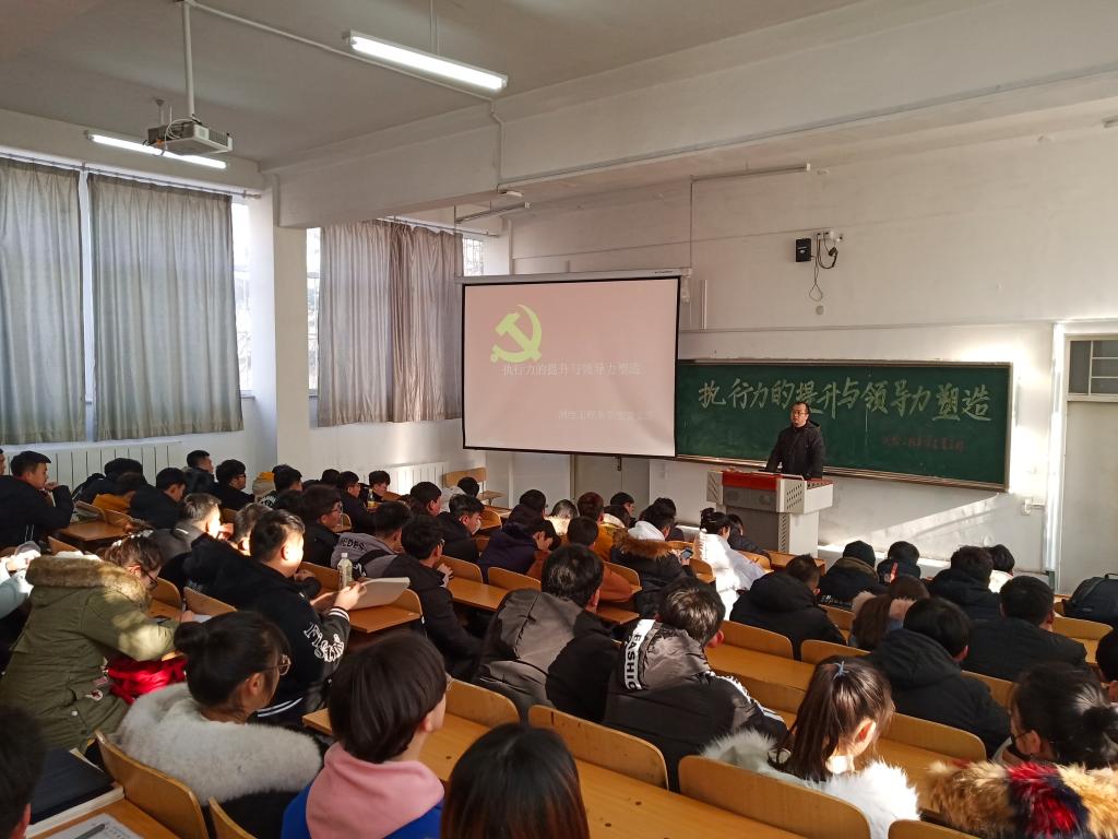 为了提升广大学生党员、学生干部的执行力,培养学生具备优秀的领导力,2018年12月13日,测绘系学生党支部书记刘建利为学生党员、入党积极分子及申请入党学生做了主题为《执行力的提升与领导力塑造》的党课,全系学生党员、入党积极分子、部分申请入党学生100余人参加了学习活动。