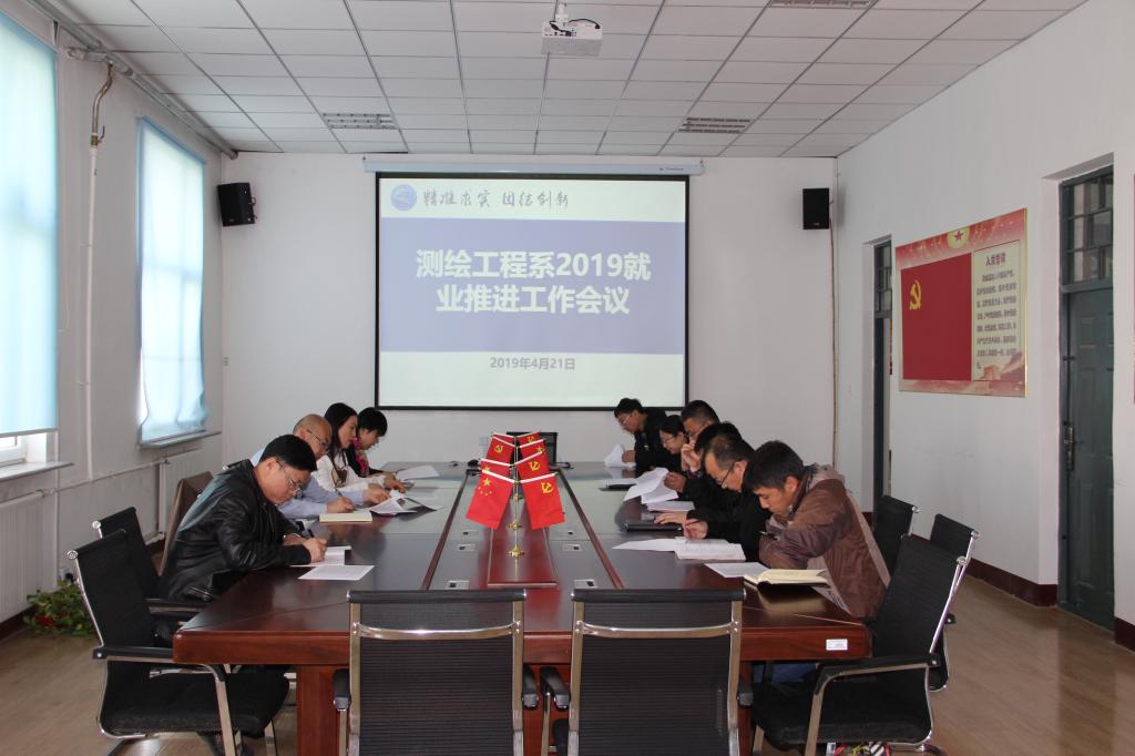 2019年4月21日中午,测绘系2019届毕业生就业工作推进会议在系四楼会议室举行。测绘系领导班子全体成员及专业主任、就业专项辅导员参加了会议。会议由党总支书记张哲主持。