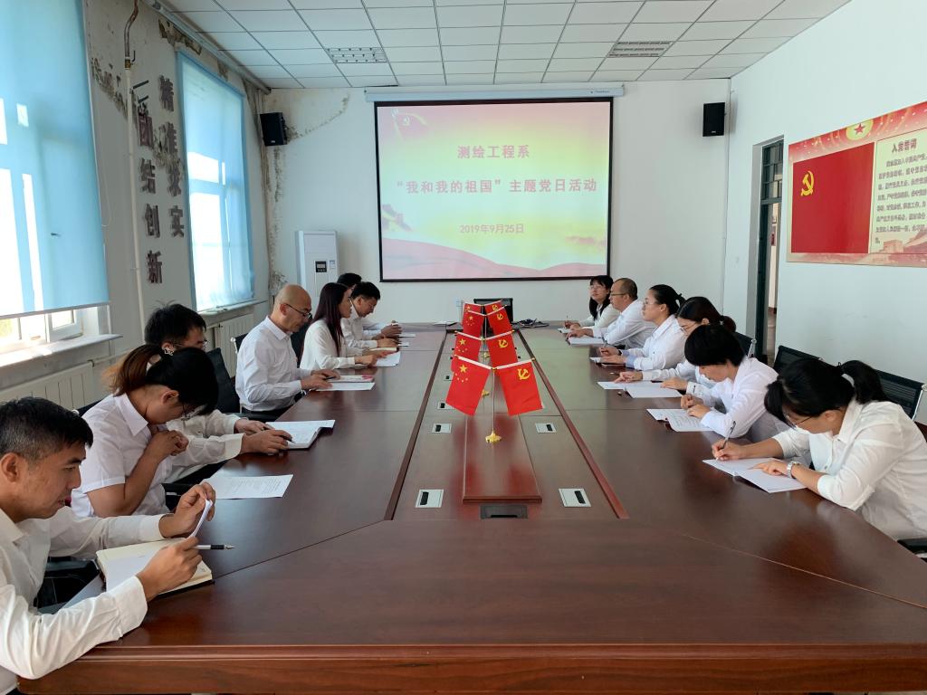 为了迎接建国70周年,弘扬爱国主义精神,增强党性修养,牢记使命担当,2019年9月25日,测绘系组织全体教职工党员在四楼会议室召开“不忘初心跟党走,牢记使命勇担当”主题党日活动。