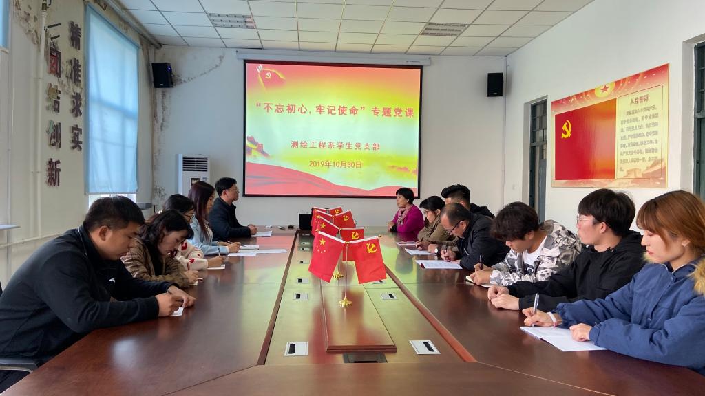 2019年10月30日,测绘系学生党支部全体成员在四楼会议室开展了“不忘初心,牢记使命”主题党课学习活动。
