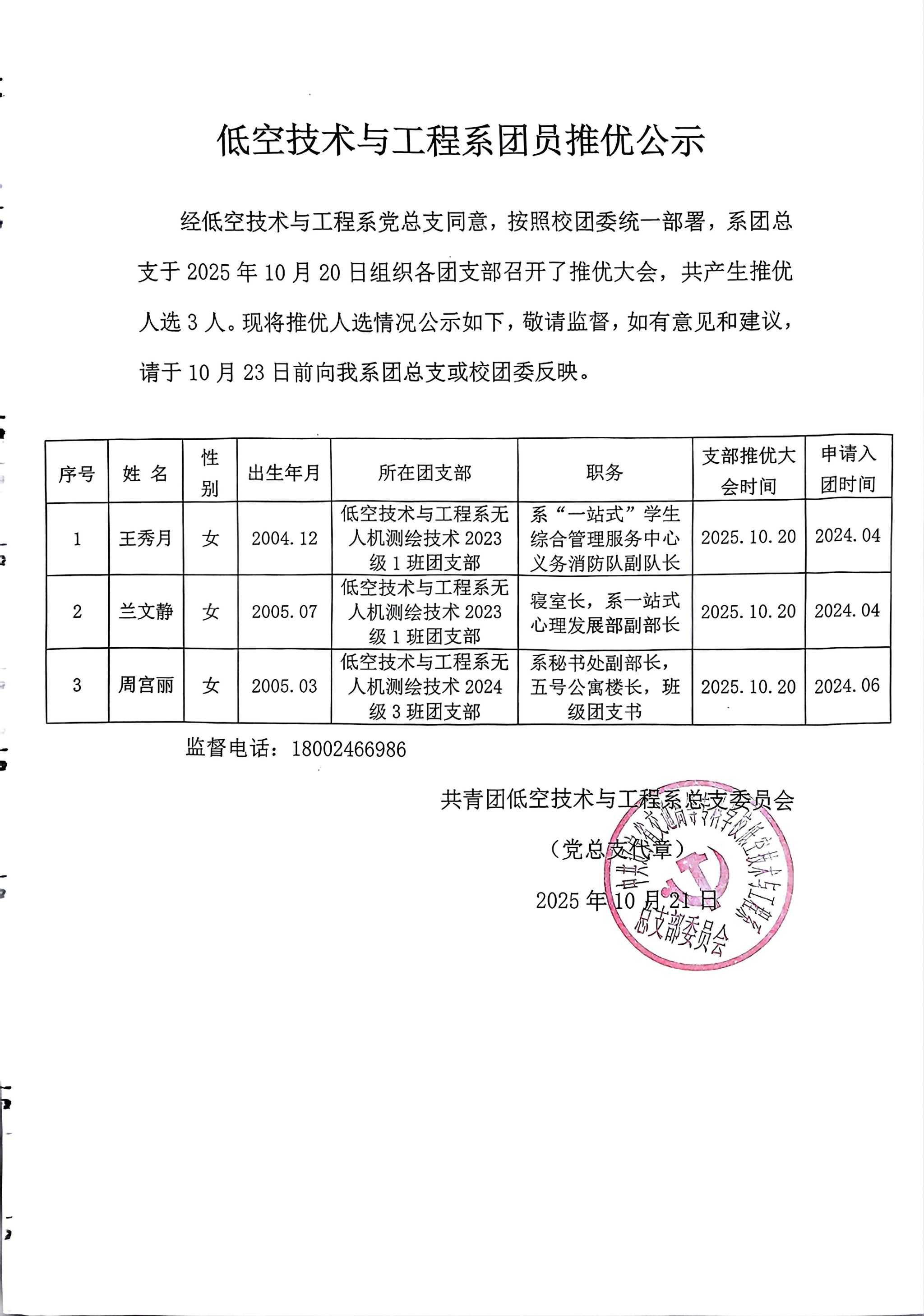 低空技术与工程系团员推优公示