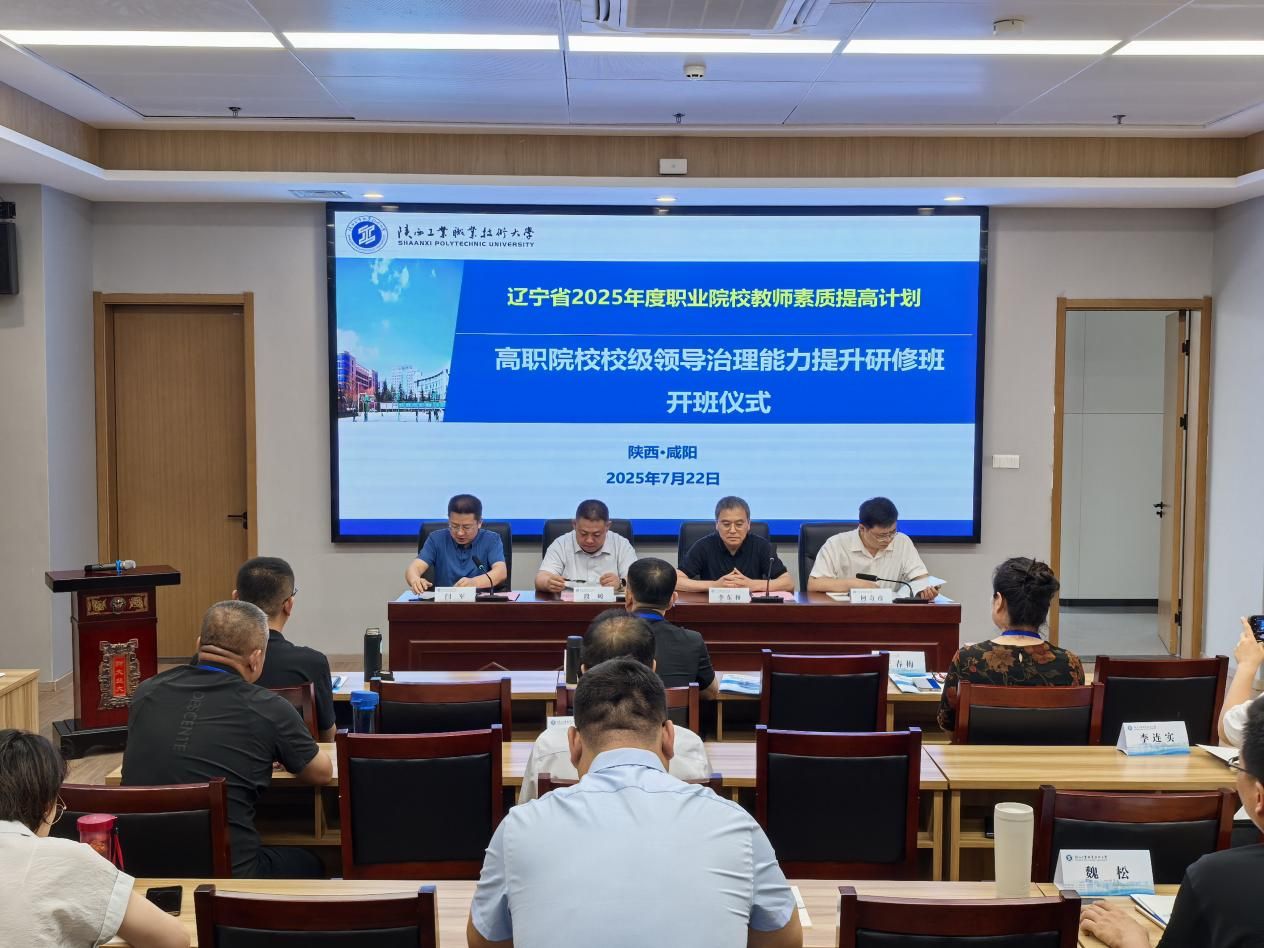 7月22日上午,2025年辽宁省职业教育教师素质提高培训项目高职院校校级领导治理能力提升研修班开班仪式在陕西工业职业技术大学经开校区举行,本次培训由我校承办、陕西工业职业技术大学协办。我校继续教育培训学院院长李东和,陕西工业职业技术大学副校长段峻、继续教育与培训学院院长闫军、财经与旅游学院院长何奇彦以及来自辽宁省20余名学员参加了开班仪式。开班典礼由闫军主持。