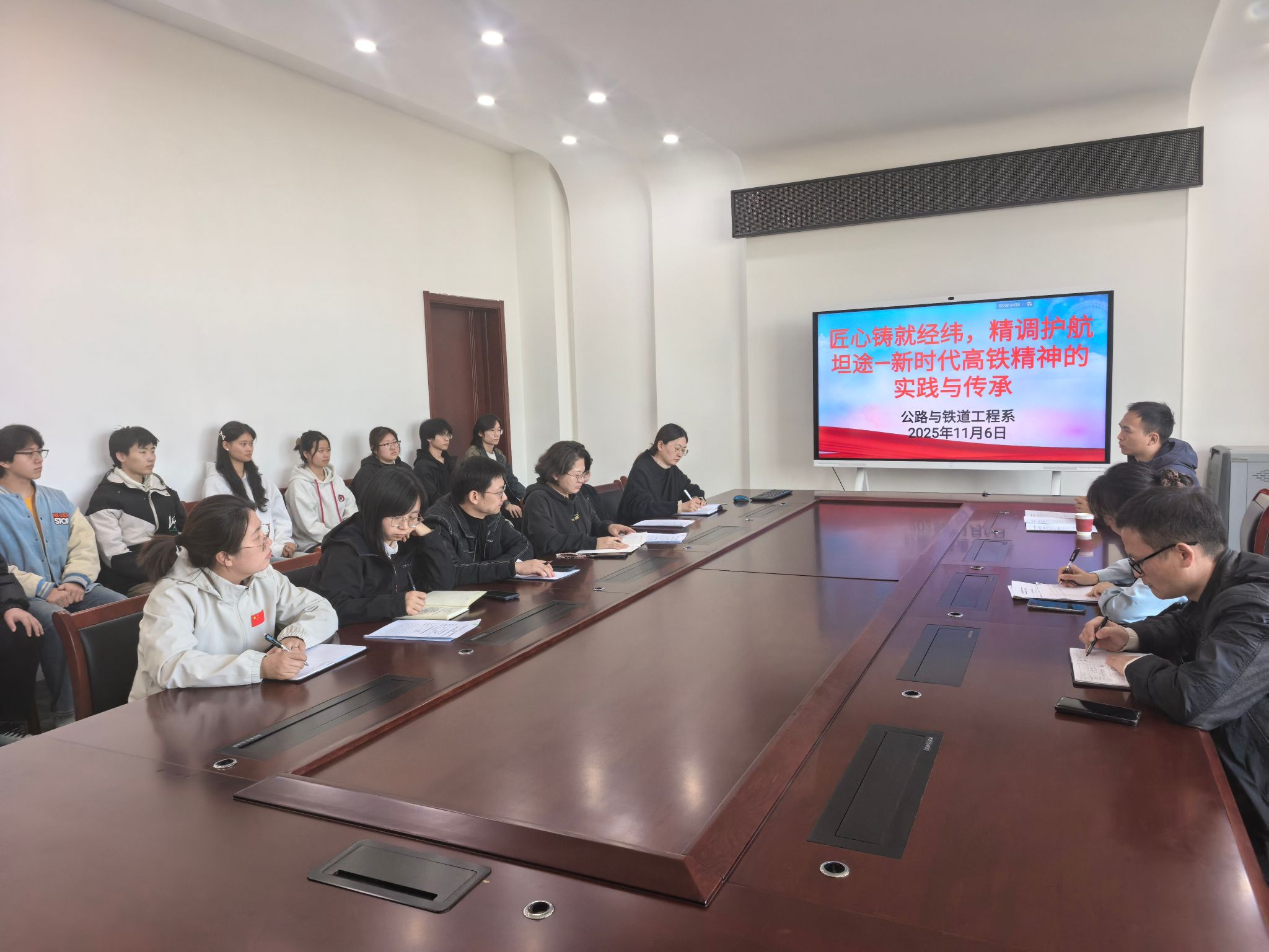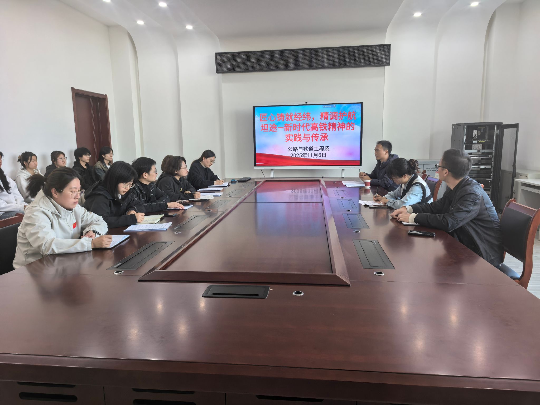培训中,崔恒结合十余年行业经历,以实际工程为案例,系统梳理了以“安全优质、兴路强国”为核心的新时代铁路精神,并重点解读了其在高铁领域的生动体现—“匠心”与“精调”。教师们认识到,“匠心”不仅是技艺层面的精湛,更是对职业的敬畏、对标准的坚守、对创新的追求;“精调”则体现了科学严谨的态度、一丝不苟的作风和万无一失的责任心。这种精神是爱国主义、集体主义、社会主义精神的具体化,是艰苦奋斗、无私奉献传统的时代化,更是社会主义核心价值观在交通强国实践中的集中彰显。