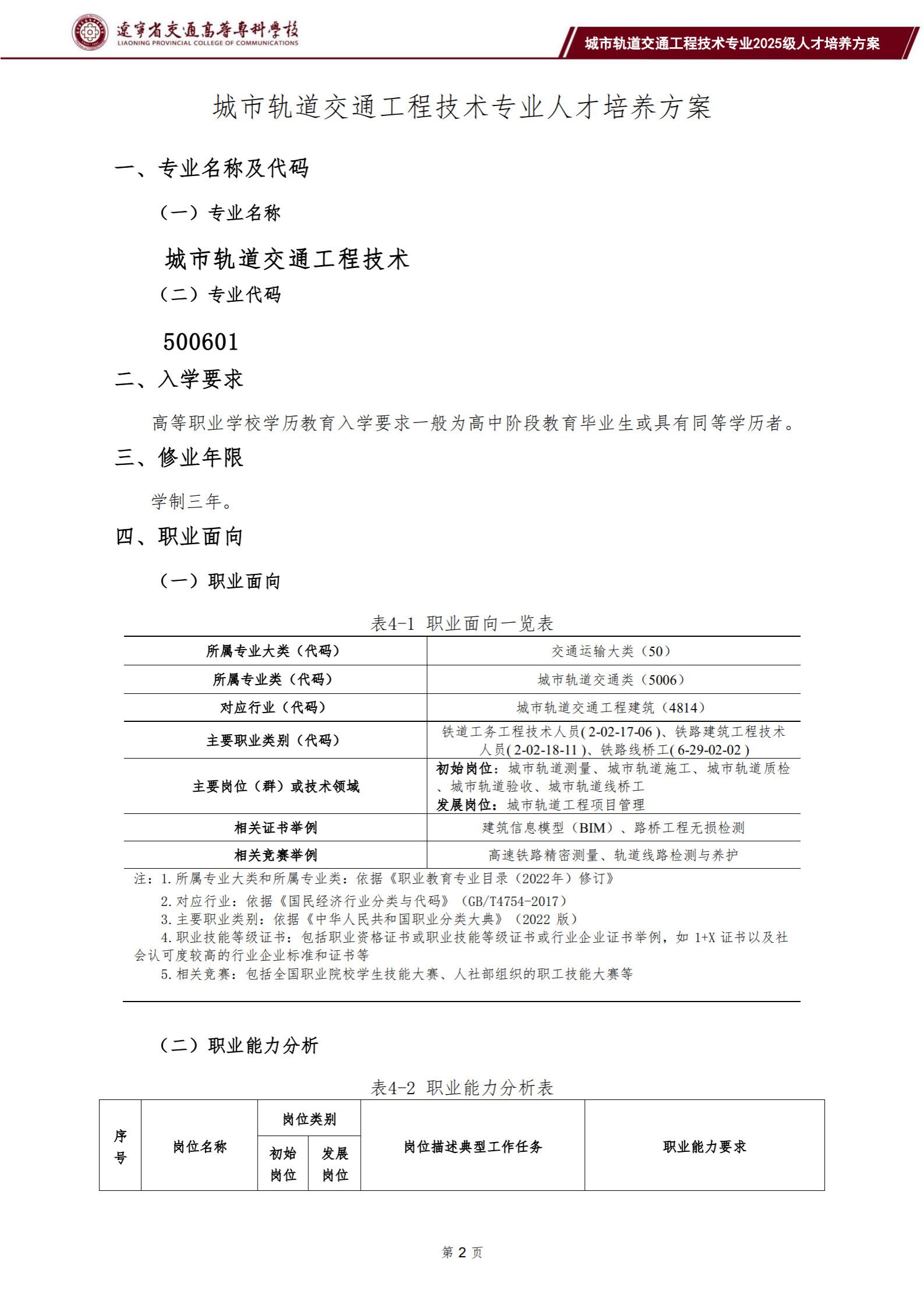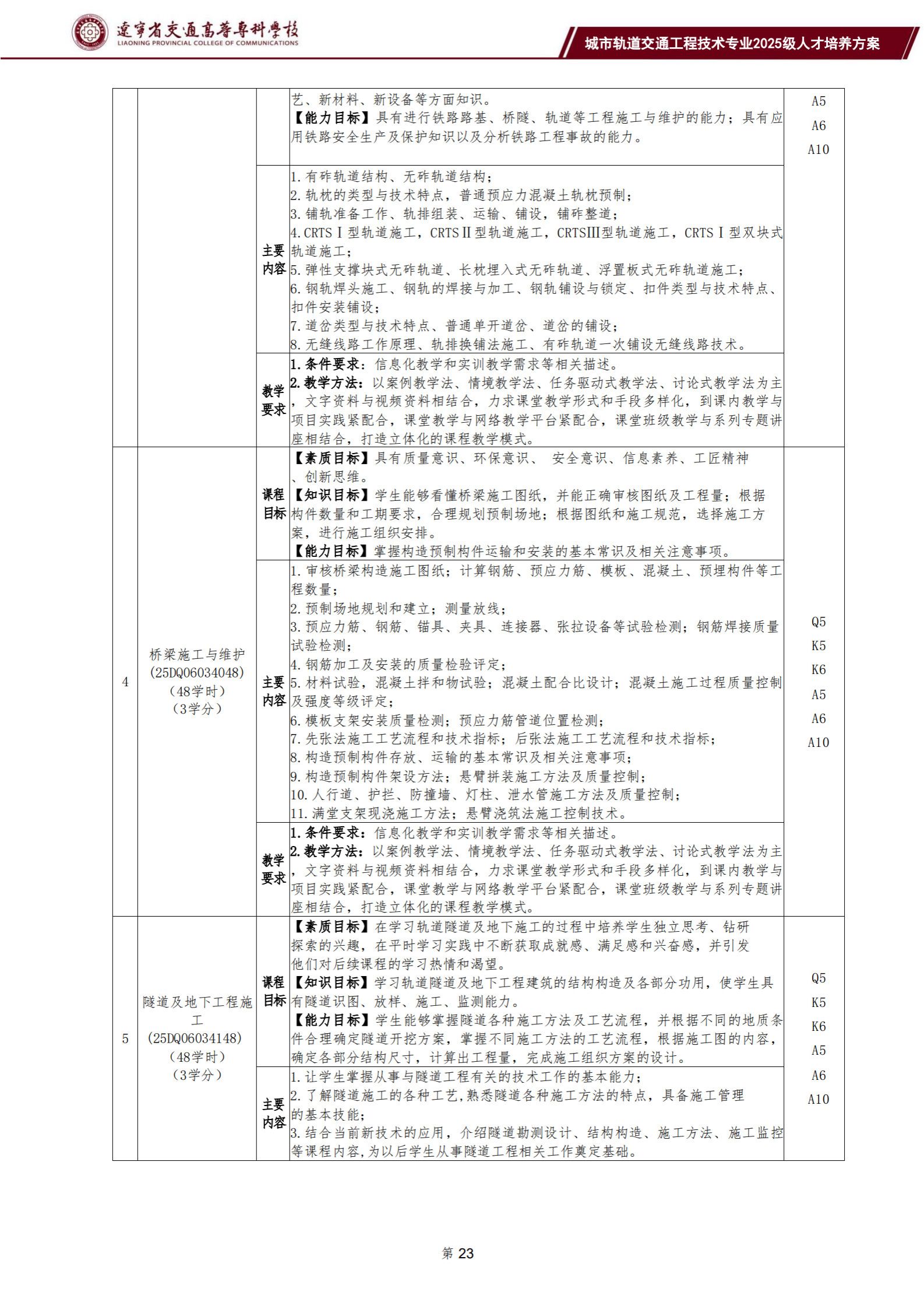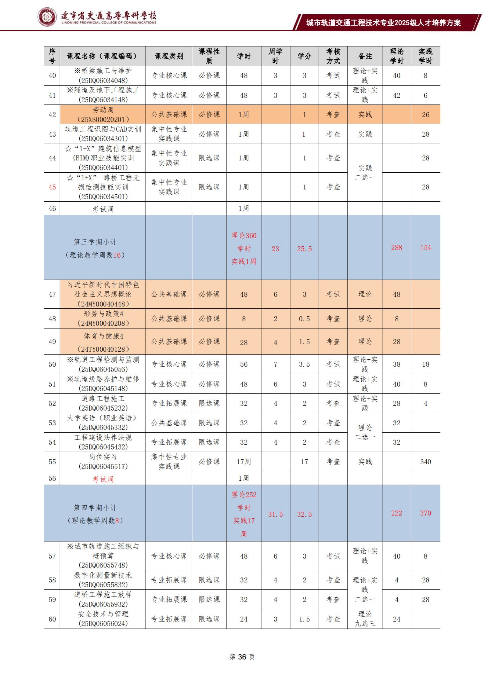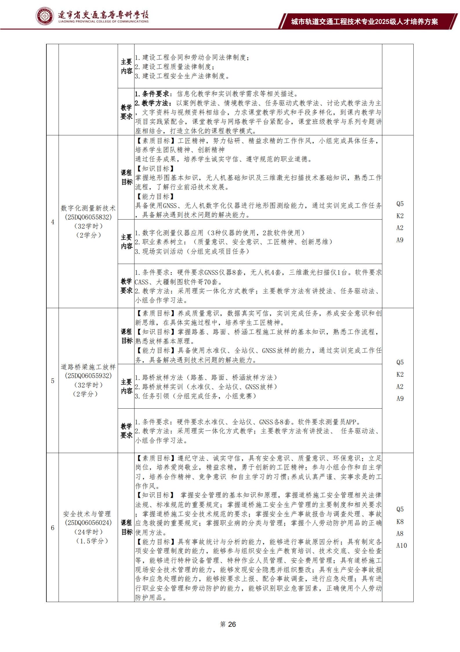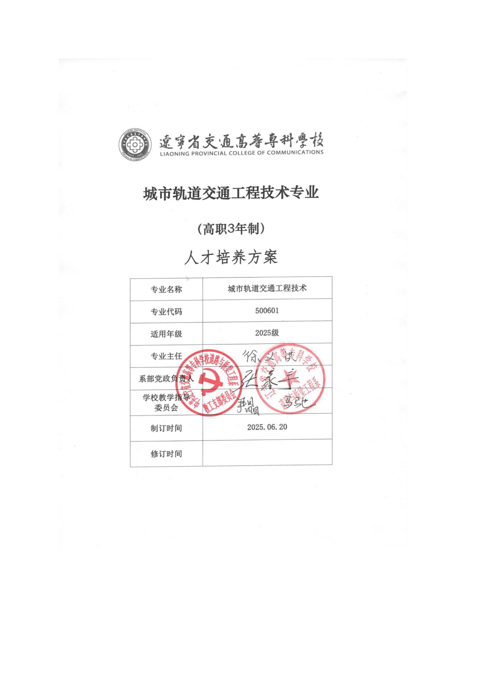 城市轨道交通工程技术专业人才培养方案(2025级)
