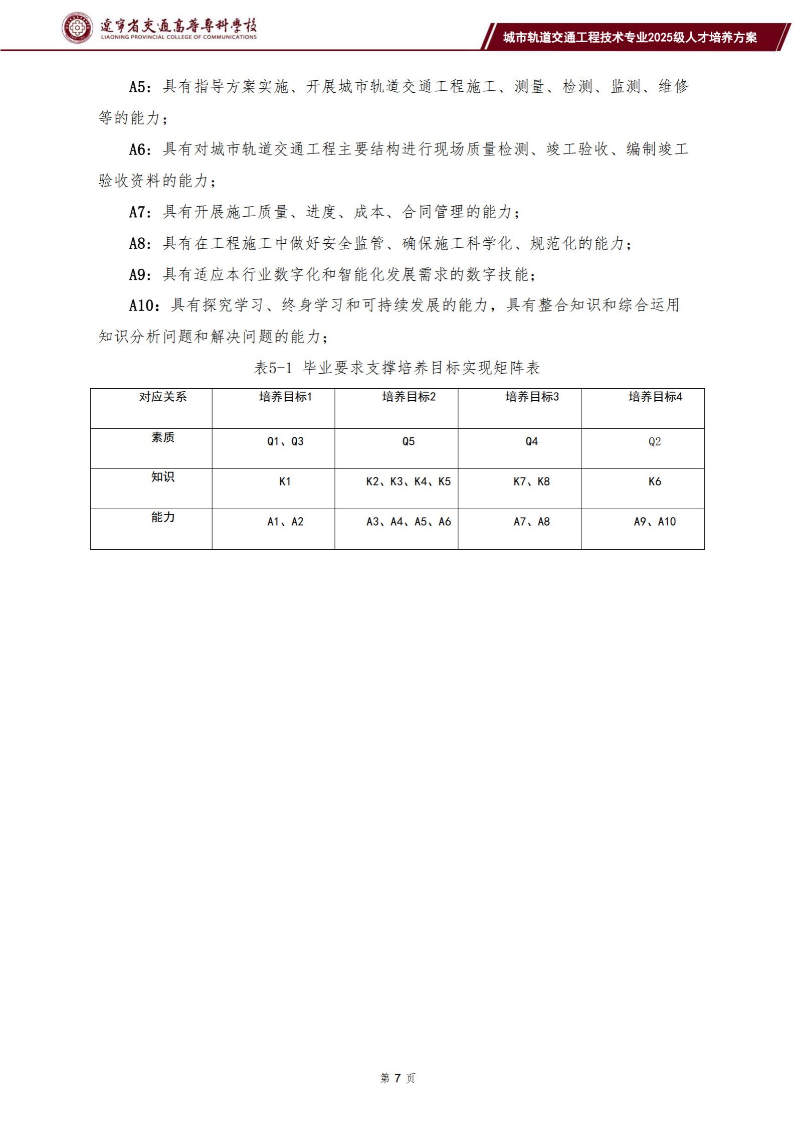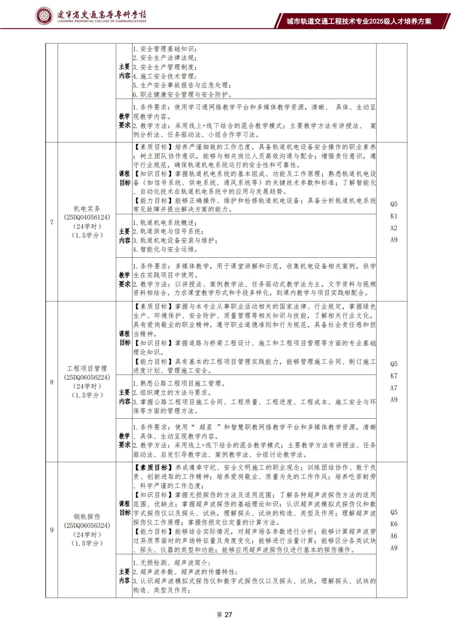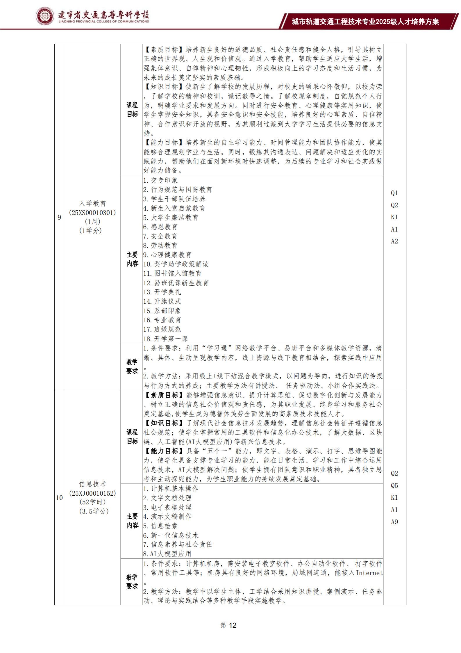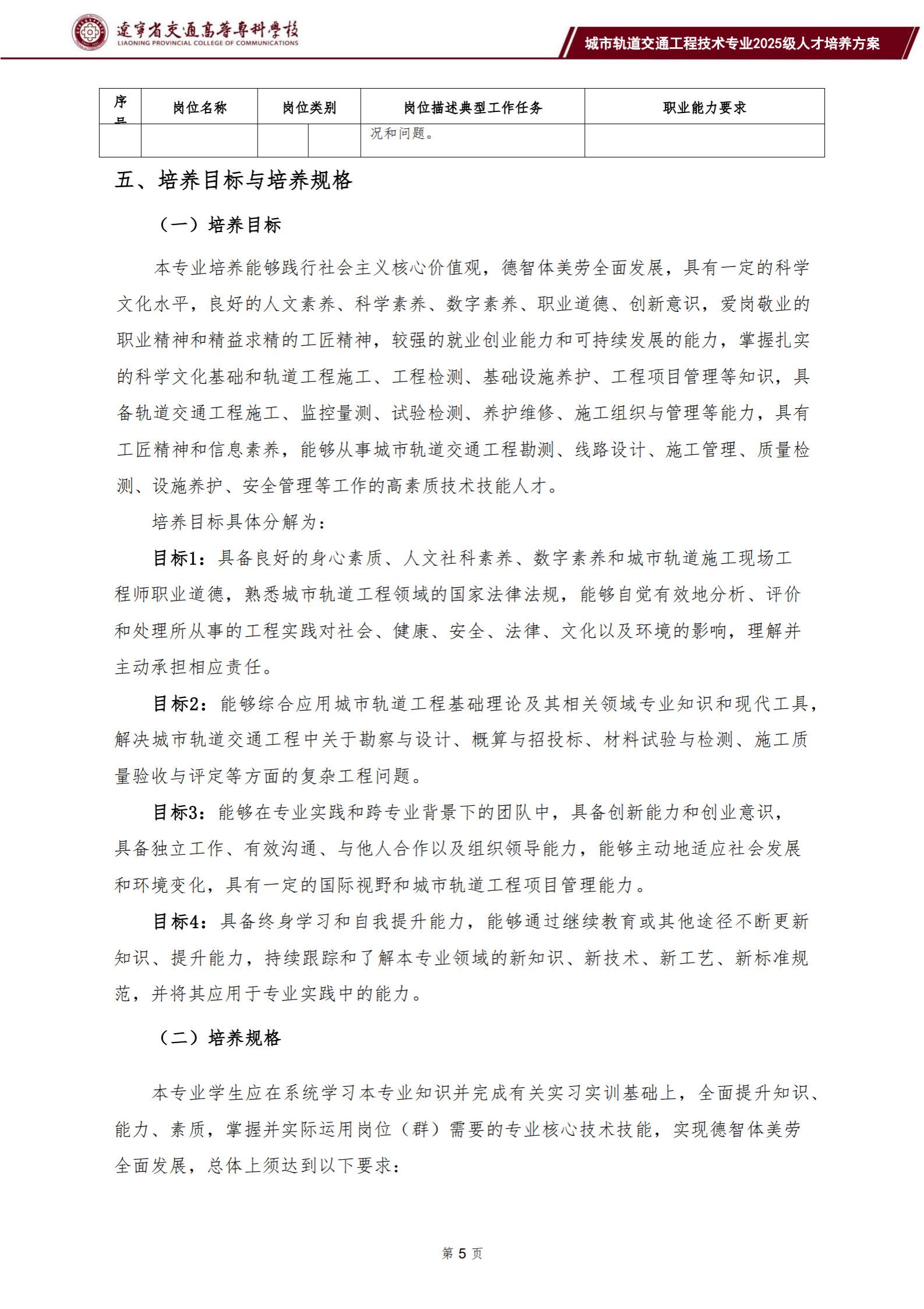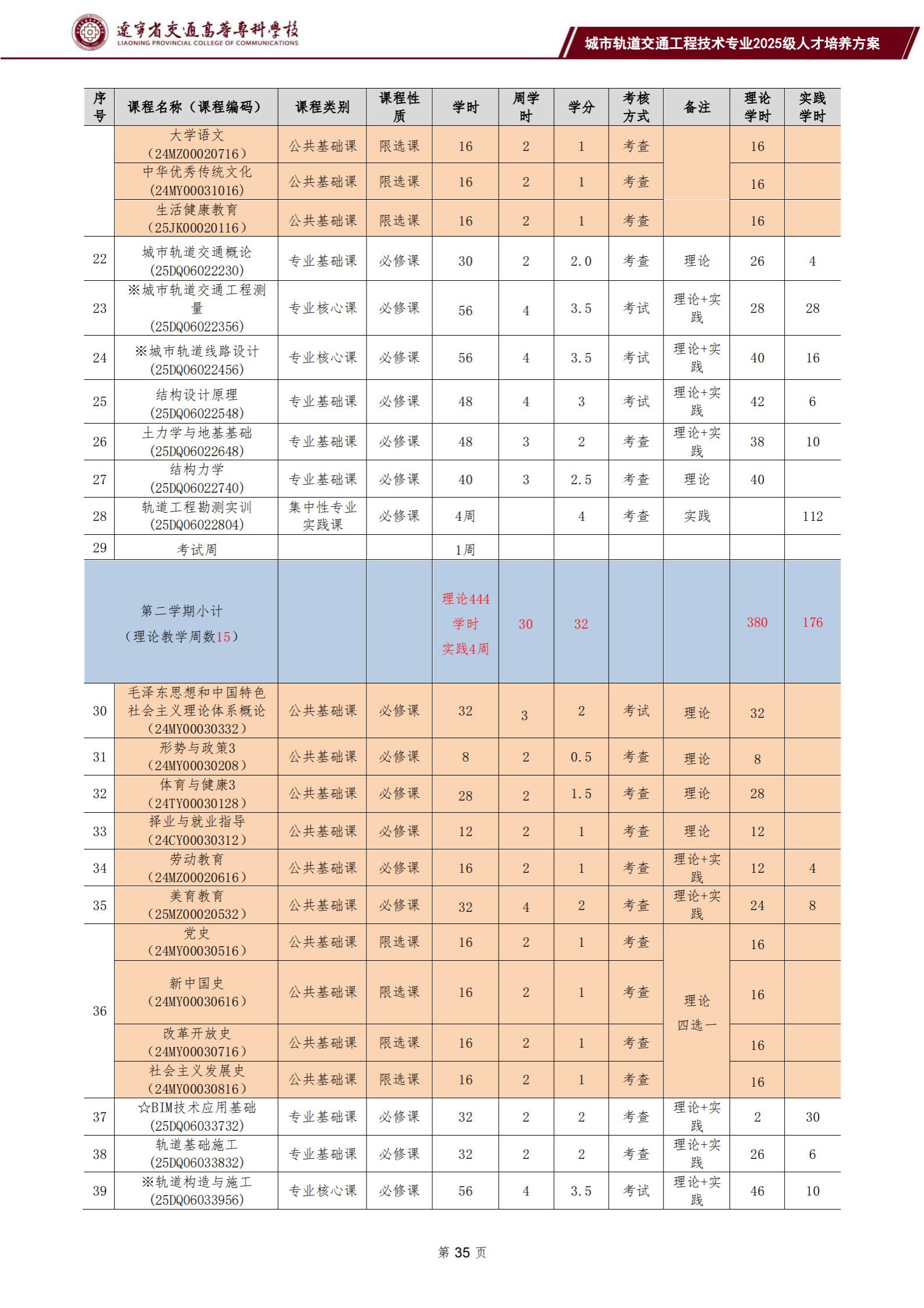 城市轨道交通工程技术专业人才培养方案(2025级)
