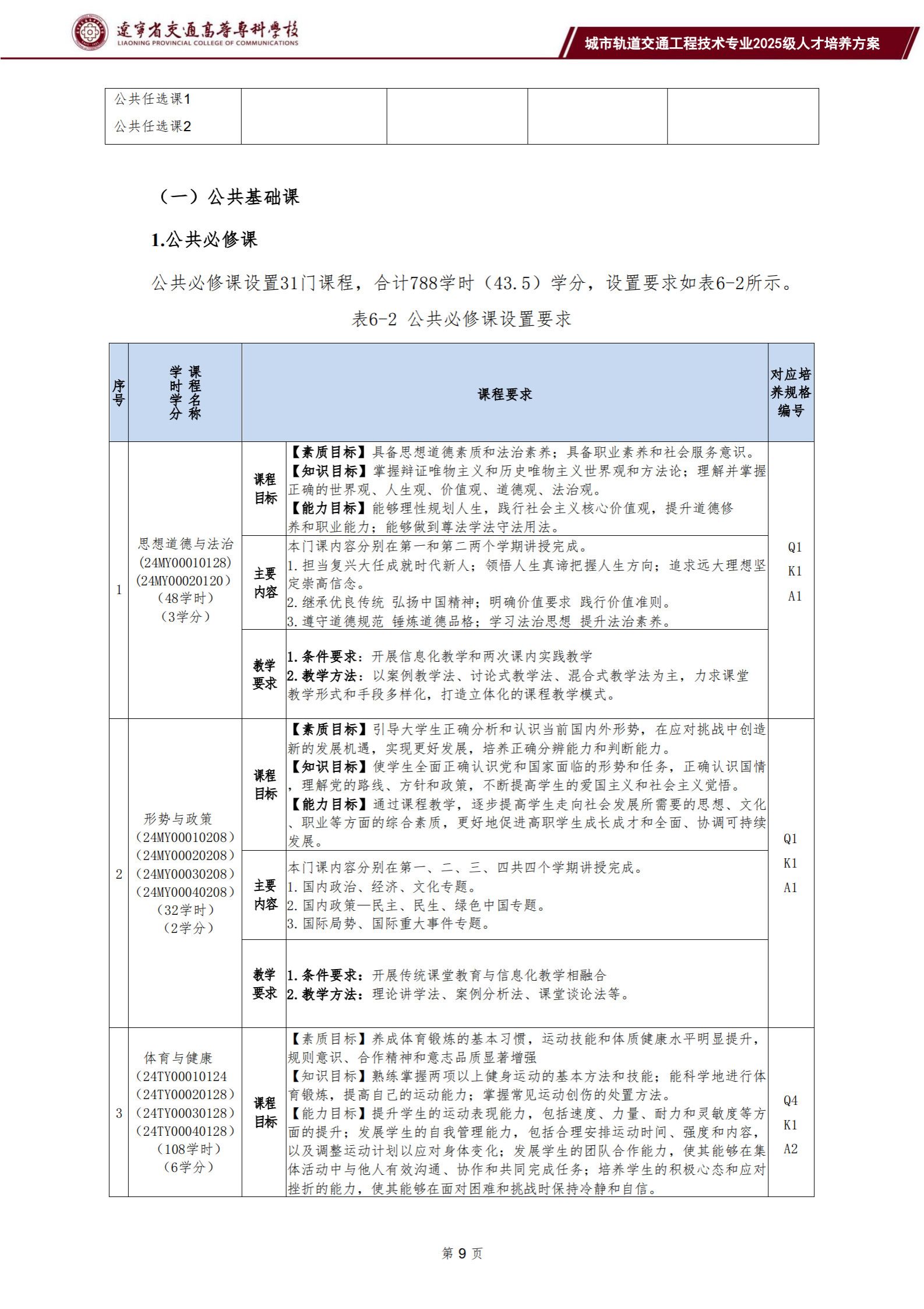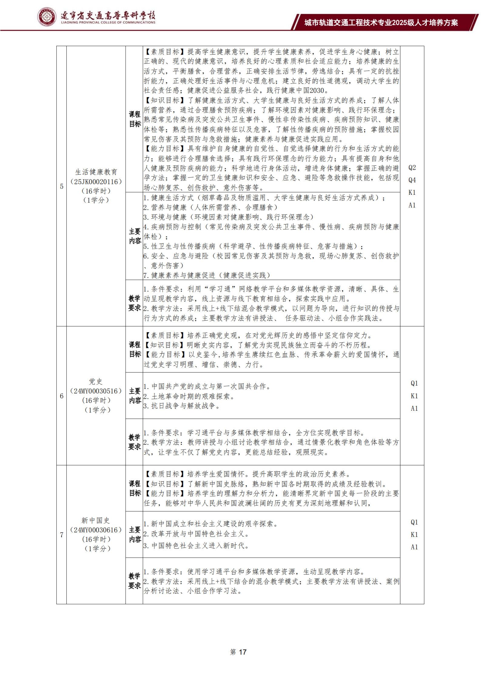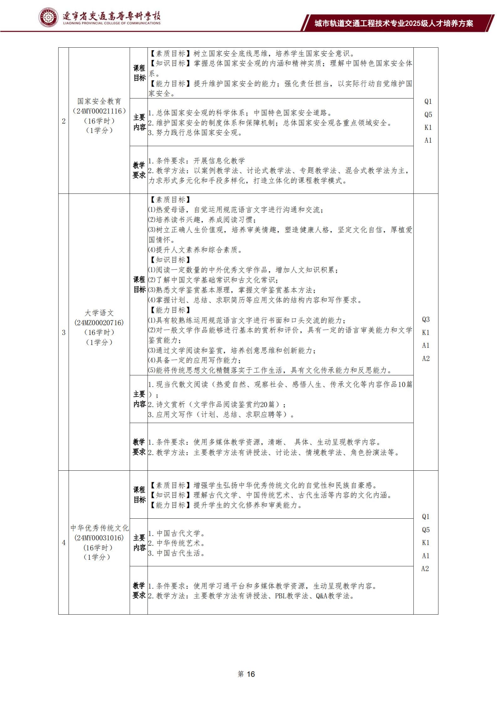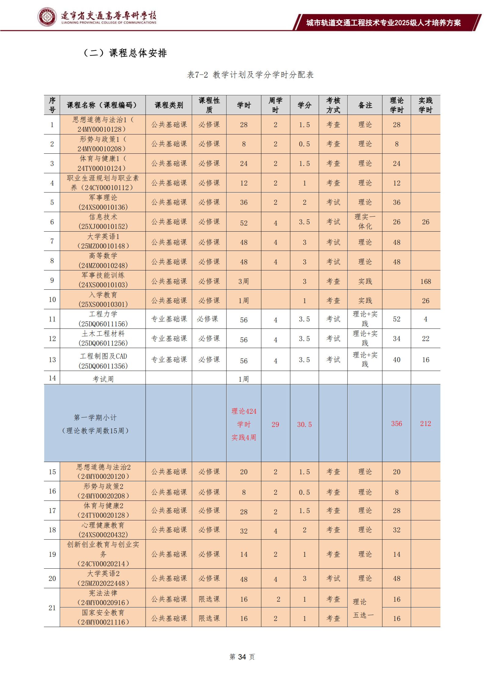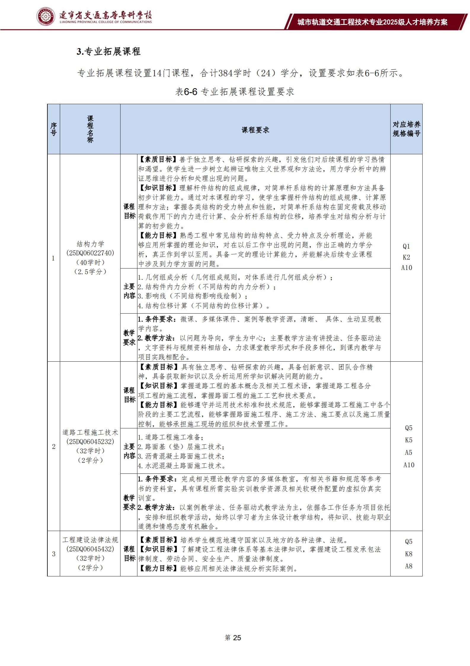 城市轨道交通工程技术专业人才培养方案(2025级)