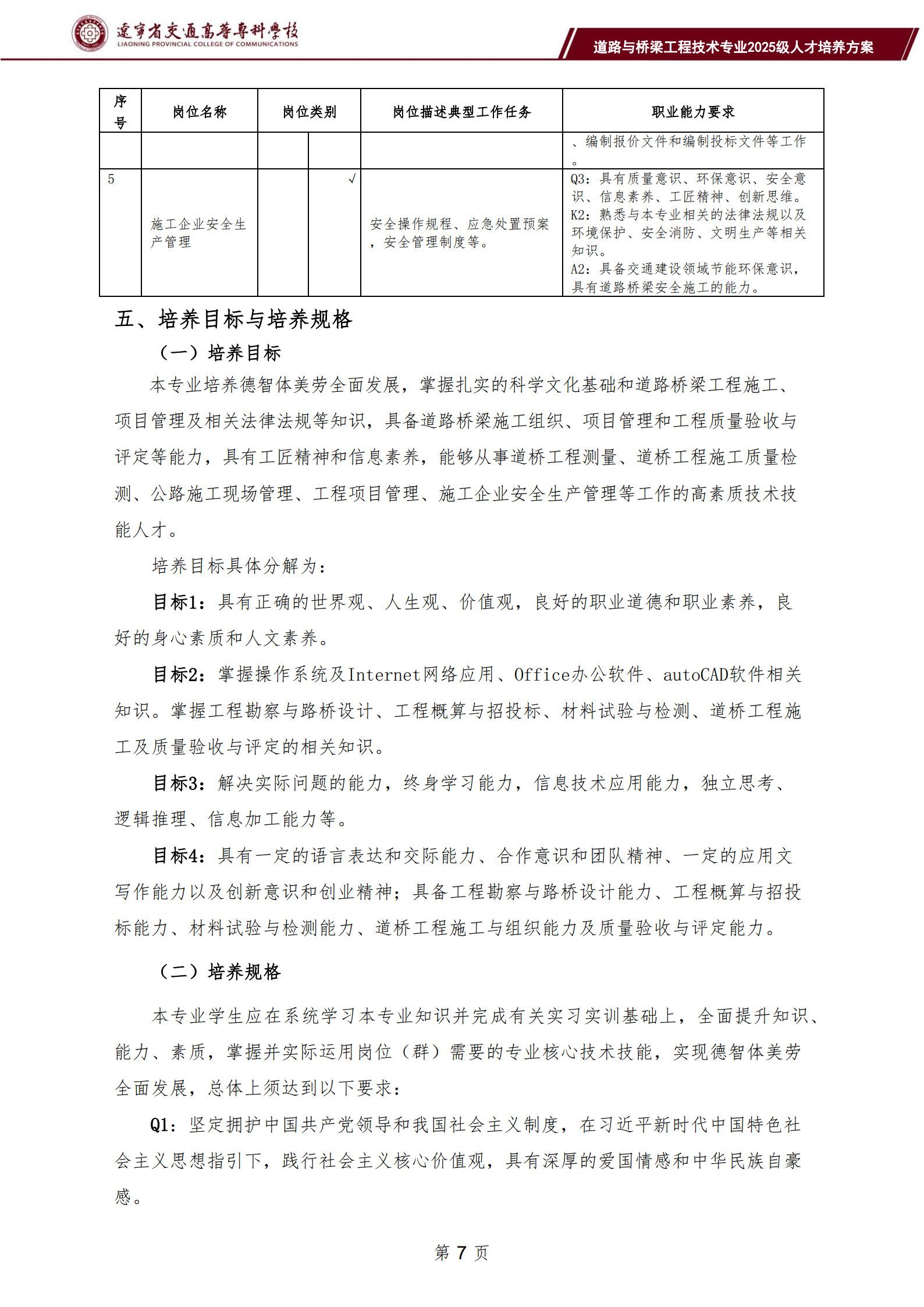 道路与桥梁工程技术专业人才培养方案(2025级)