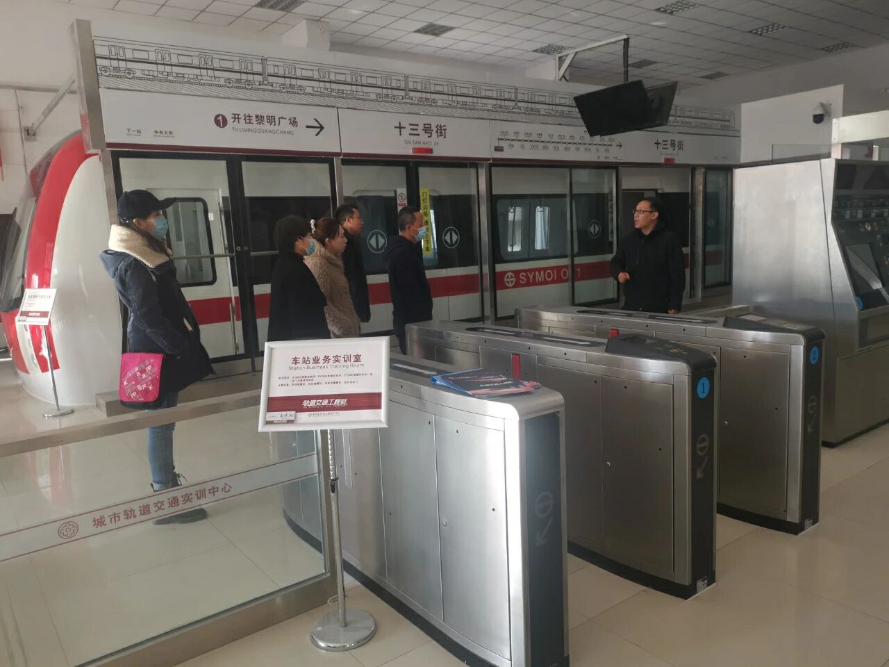 宣讲招聘结束后,为深化产教融合、建立校企合作关系,推进轨道系专业建设,轨道系党总支副书记李爽、系副主任薛亮带领大家参观了我系城市轨道交通实训中心,薛亮副主任围绕实训中心的主要设备、基本功能、承接的各项比赛等做了详细地介绍。