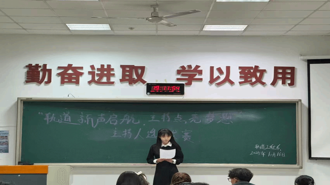 为锤炼口语表达、临场应变等主持能力,挖掘语言人才。2025年10月16日,轨道工程系以“轨道新声启航,主持点亮梦想”为主题开展主持人大赛。活动为轨道学子搭建语言竞技与展示平台,传递轨道人的追梦热情,凝聚系部活力,营造勇于表达、乐于展示的文化氛围,让主持梦想助力轨道学子青春成长。