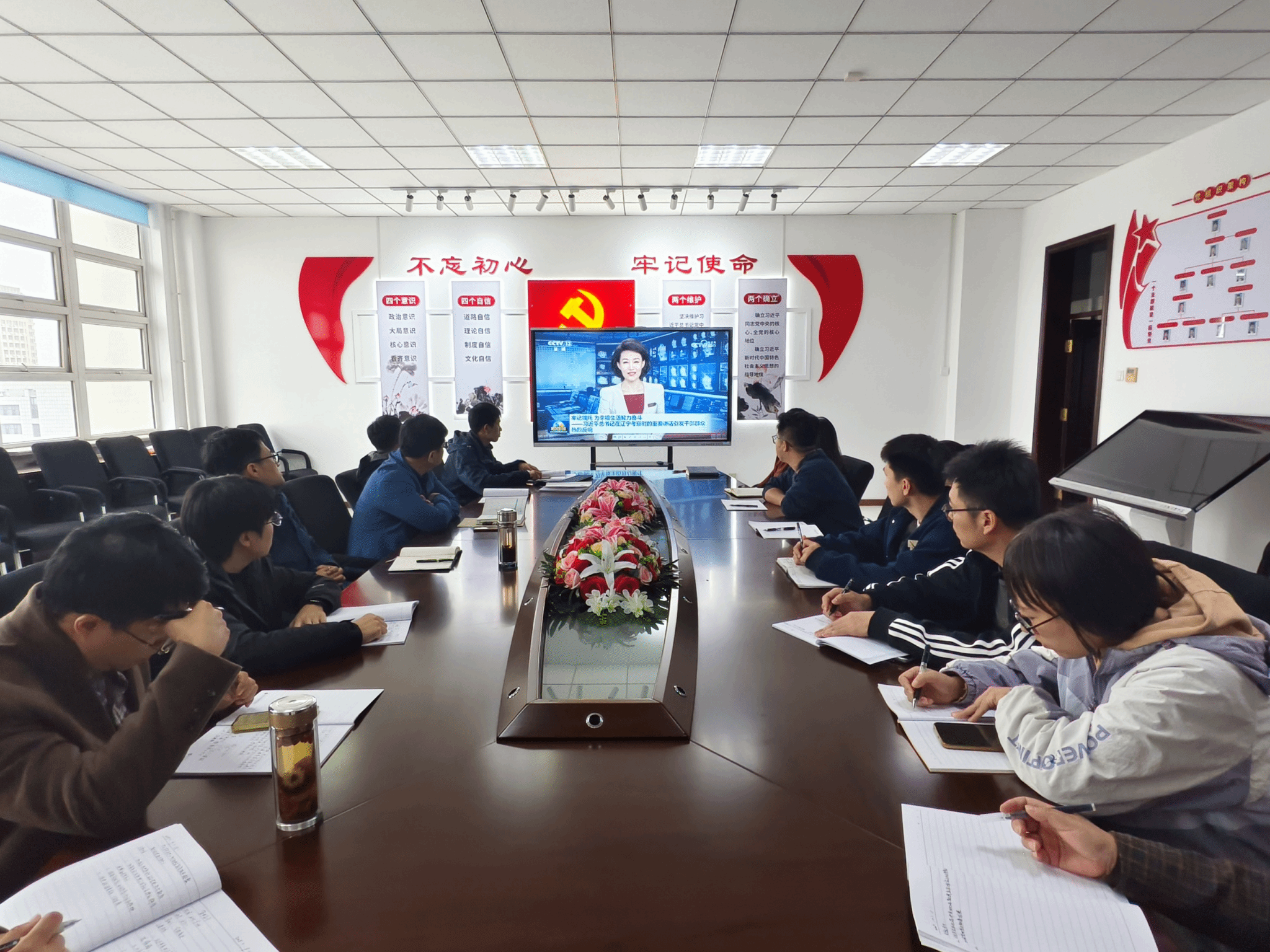 观看结束后,朱永书记作总结讲话。他强调,全体党员要把学习成果转化为工作实效:一要筑牢思想根基,将重要讲话精神融入日常理论学习,增强“四个意识”、坚定“四个自信”、做到“两个维护”;二要立足岗位担当,结合教学科研、人才培养工作,把服务辽宁行业发展作为己任;三要严守纪律规矩,以中央政治局民主生活会精神为指引,锤炼党性作风,为学校高质量发展和辽宁全面振兴贡献支部力量。
