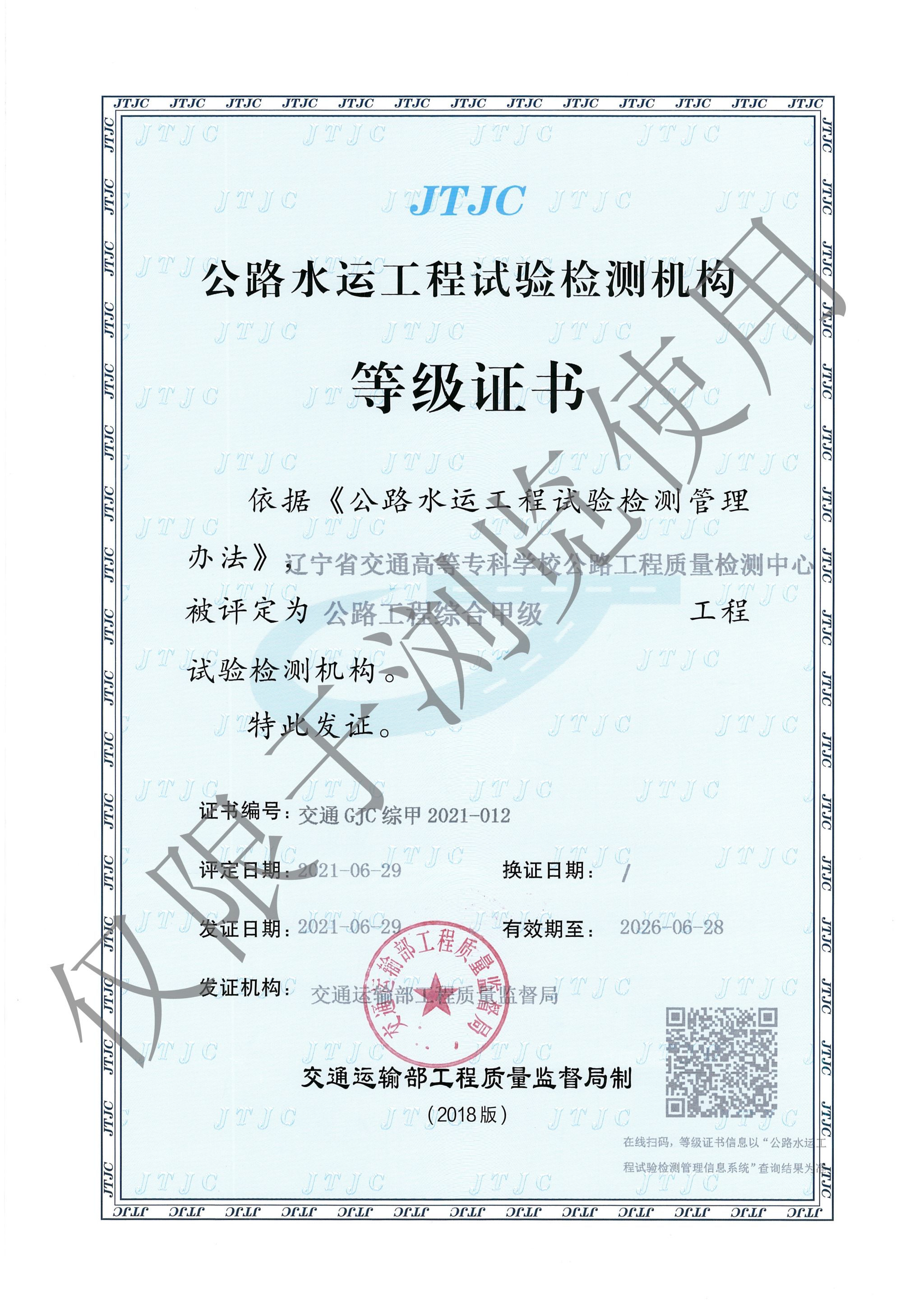 Liaoning Provincial College of Communications,Highway engineering quality inspection center