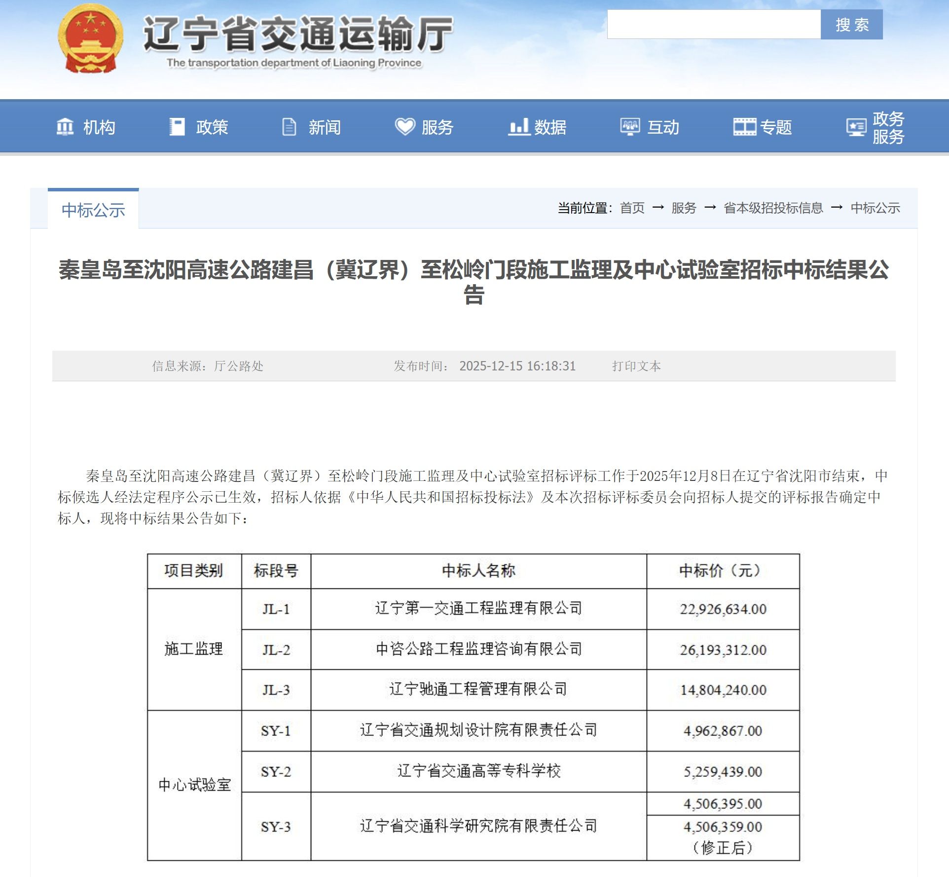 秦皇岛至沈阳高速公路是国家高速公路网的重要组成部分,是连接华北与东北地区的交通动脉。本次中标的建昌(冀辽界)至松岭门段,对完善区域路网布局、推动沿线经济社会发展具有重要战略意义。
