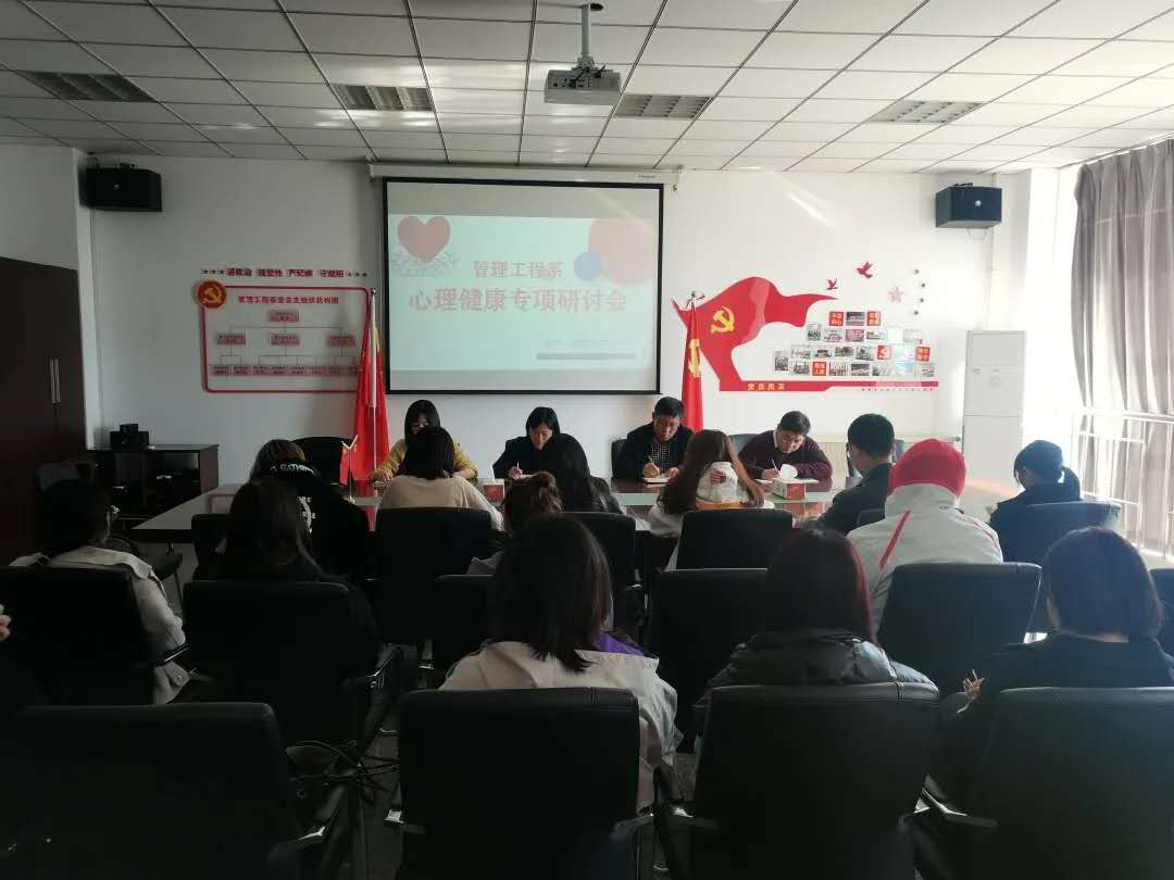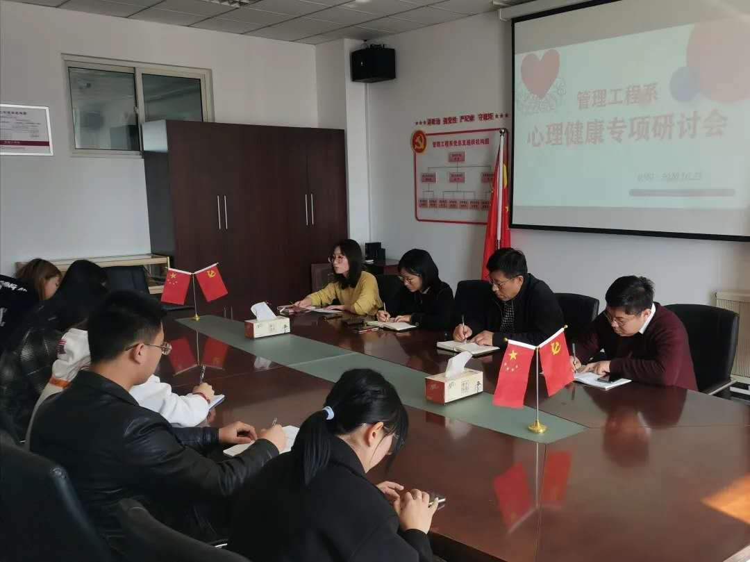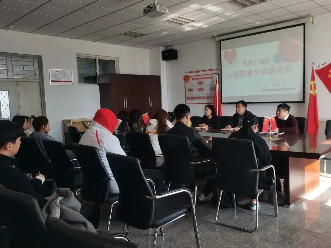 为了进一步做好我系学生心理健康工作,宣传普及心理健康知识,提高我系学生心理委员业务水平,10月23日中午,在会议室召开心理健康专项研讨会,我系党总支书记富浩、副书记张宁、心理专项负责人李蒨、各专业辅导员以及各班心理委员参加了本次会议。
