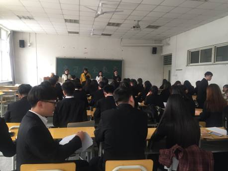 2017年10月19日下午,我系市场营销专业在C101教室组织召开2015级学生实习动员大会。市场营销专业主任张丽莉、专业教师杨天舒、刘静、张宁及2015级市场营销专业学生参加了会议。