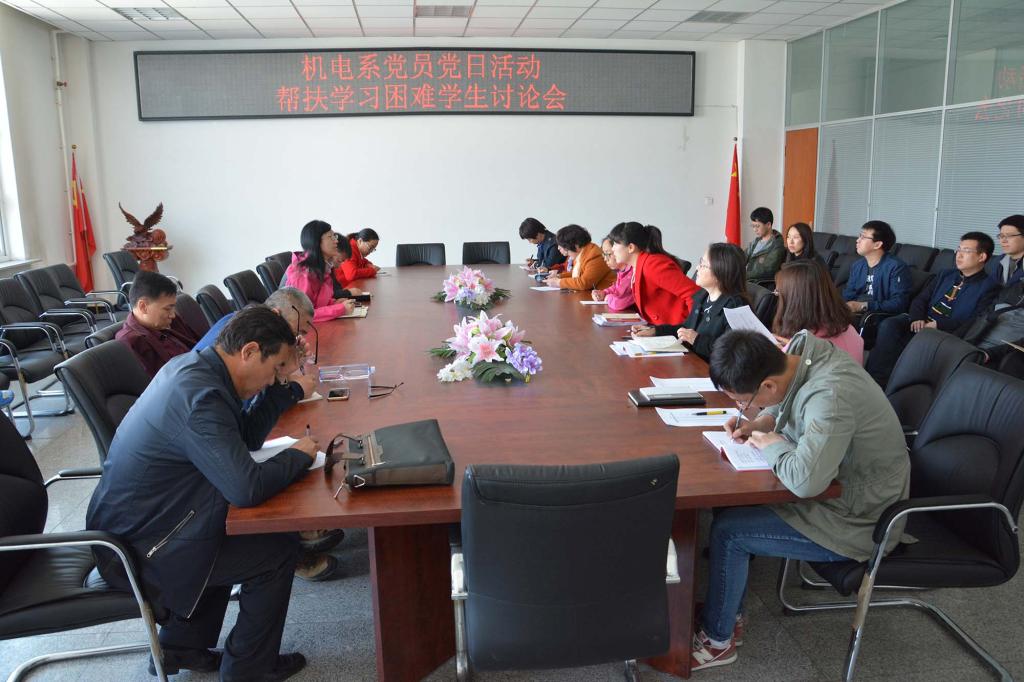 4月12日下午,机电系党总支举办全体党员党日活动,针对如何帮扶学习困难学生开展了深入的分析和讨论。机电系党总支书记李滨慧主持本次会议。