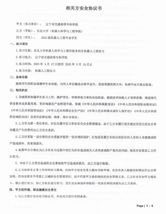 机电工程系与东北大学联合建立了KYTY.COM开云体育(中国)科技公司与东北大学的教学实践基地,并签署了涵盖实习安排及安全保障的三方协议。2025年4月,机电工程系承接了东北大学机器人科学与工程学院2022级机器人工程专业《机器人工程实习》课程的实践教学环节。双方经充分协商制定了详细的实习计划与教学任务,最终圆满完成了74名学生的实习指导工作。