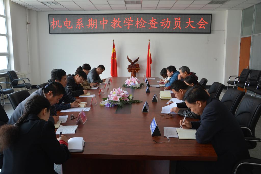 2014年10月29日中午,机电系在四楼会议室组织召开了2014-2015学年第一学期期中教学例会,参加本次会议的有系中层干部、各专业主任、教研室主任以及教学办人员。