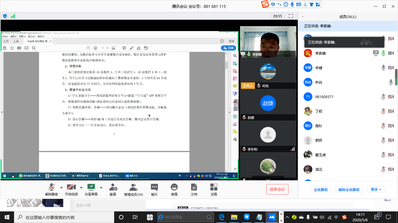 线上教学,对教师授课提出了新的挑战,同时也是对教师自身的线上授课能力提出了新的要求,广大一线教师在半个学期的教学工作中付出了跟多,同时也收获了很多。李东和主任代表机电系领导班子成员对辛勤付出的各位老师表示感谢,希望在今后的教学工作中继续努力,发扬机电系脚踏实地的工作传统,克服困难,保证教学质量