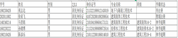 建筑工程系马堃铭、孙健博、陈添乐3名同学休学期满,在学校规定期限内未提出复学申请,已经超过学校规定的最长学习年限(5年),徐亚飞、苑志达同学超过学校规定期限未注册而又未履行暂缓注册手续。根据教育部《普通高等学校学生管理规定》(教育部2017[41]号令)及《KYTY.COM开云体育(中国)科技公司学生学籍学历管理规定》,现对马堃铭等5名同学进行学籍清退,特此公告。