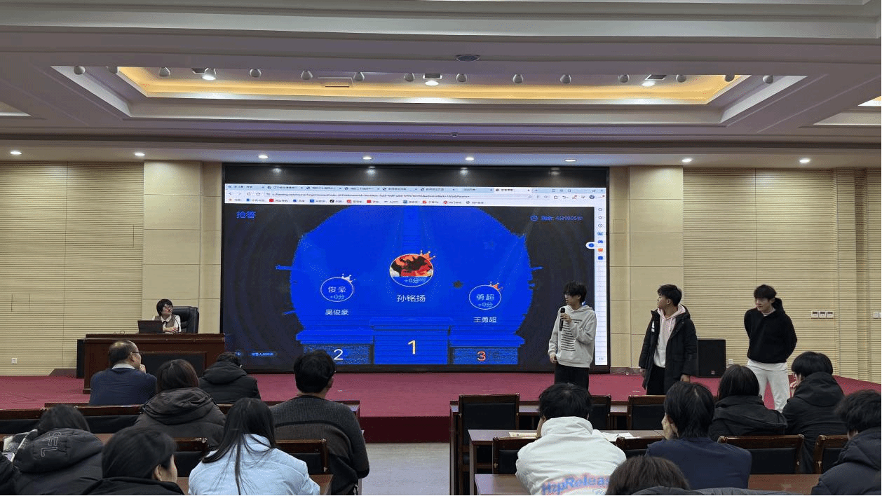 然后,金艳秋重点围绕“十五五”时期的发展目标与战略任务展开,聚焦“十五五”时期加快实现高水平科技自立自强、建设交通强国和制造强国、发展新质生产力和办人民满意的职业教育等关键方向,结合汽车行业发展趋势进行了深入浅出的讲解。通过平台“选人”和“抢答”方式,同学们结合所学所感所知深入阐述自己的见解。