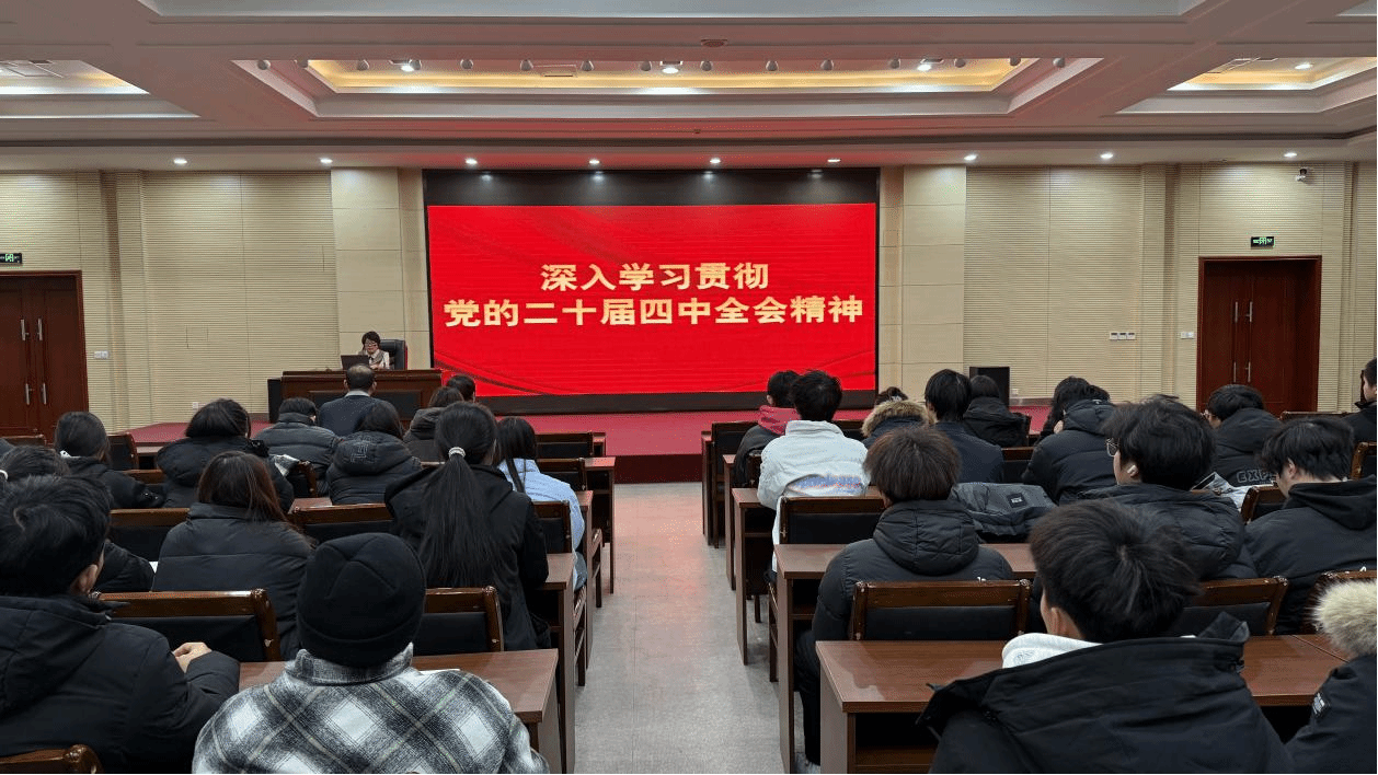 为深入学习贯彻党的二十届四中全会精神,引导师生深刻领会新时代新征程党的使命任务,12月4日,汽车工程系党总支在学生素质中心101组织召开党的二十届四中全会精神学习宣讲会,党总支书记金艳秋担任主讲,组织员、辅导员、学生党员、预备党员、入党积极分子、学生干部及团员代表等共200余名师生参加。
