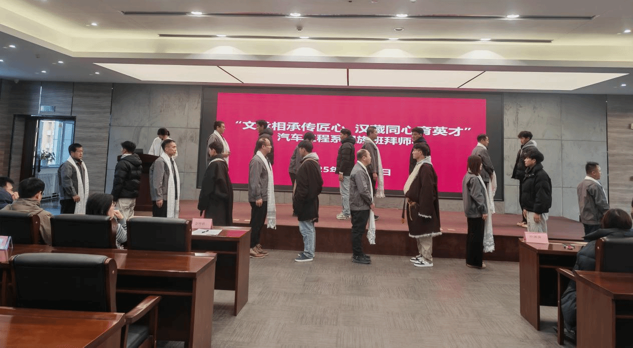 为深入贯彻落实党的二十届四中全会提出关于“铸牢中华民族共同体意识,推进中华民族共同体建设”的战略部署,大力弘扬中华优秀传统文化中源远流长的师道传统,深化民族团结教育,推动职业技能与工匠精神的代际传承,12月16日下午,汽车工程系隆重举行“文脉相承传匠心 汉藏同心育英才”民族班拜师礼仪式。系领导班子成员、结对教师、辅导员及23名民族班学生参加了此次活动。