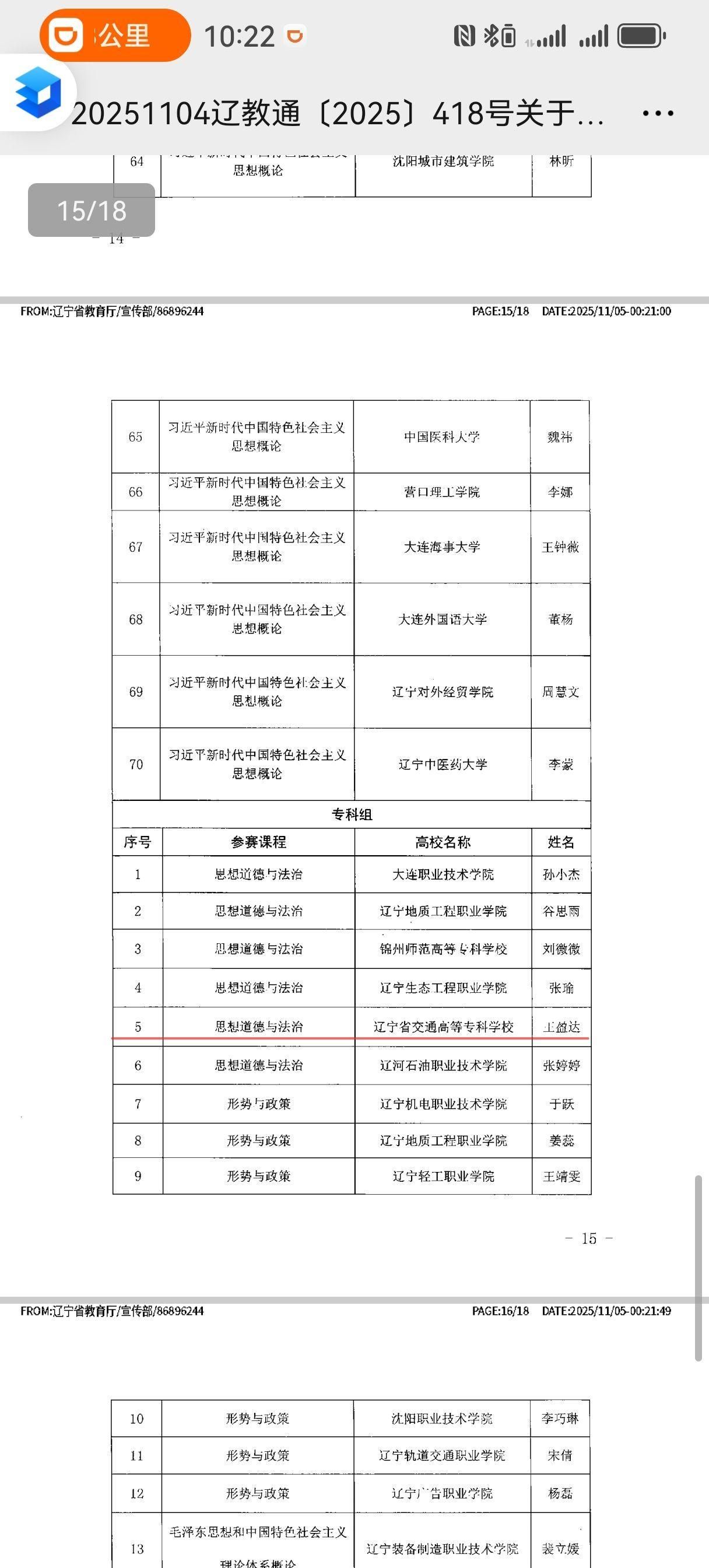 教学成果 当前位置: 首页 > 教学工作 > 教学成果 > 正文 第十四届辽宁省高校思想政治理论课教学大赛 发布时间:2025-12-08 19:01 浏览量: 教师姓名:王盈达项目名称(赛项全称):第十四届辽宁省高校思想政治理论课教学大赛获奖等级:省级三等奖主办单位(盖章单位): 辽宁省教育厅获奖日期(年月):2025年11月成果佐证: 上一条:辽宁省职工技能大赛暨全省高校青年教师思想政治理论课教学大赛 下一条:第十三届辽宁省高校思想政治理论课教学大赛