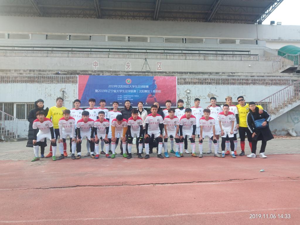 2019年11月8日,“沈阳地区高校(高职组)大学生男子足球比赛”在沈阳职业技术学院落下帷幕。本次比赛,由体育部张新吾老师和高志新老师担任教练,带领20名学生,经过5天激烈的角逐, 获得了本次比赛的亚军, 成功晋级明年的省级比赛,为我校争得了荣誉。