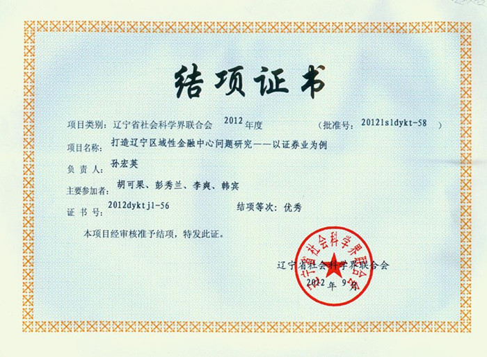 近日,我校孙宏英老师负责的《打造辽宁区域性金融中心问题研究——以证劵业为例》科研项目被辽宁省社会科学联合会评为优秀奖,并被省委宣传部《社科与决策》刊发。