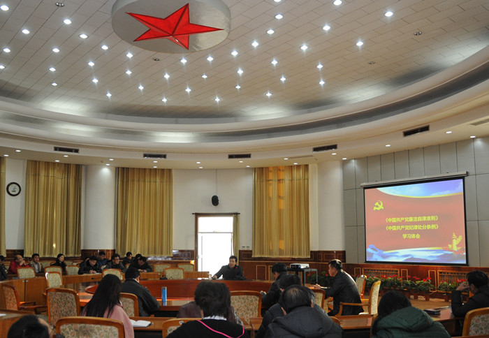 2015年11月26日下午,我校召开党委中心组理论学习扩大会议,专题学习中央新修订的《中国共产党廉洁自律准则》、《中国共产党纪律处分条例》。