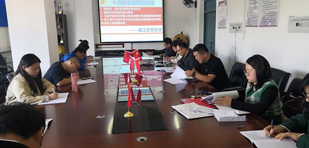 2020年10月7日,建工系党总支开展了今年10月份的主题党日活动。建工系党总支党员老师参加了主题党日,此次主题党日由建工系党总支副书记王亮主持。首先,建工系党总支为韩春威、薛忠泉两位党员老师过政治生日,在广大党员老师的祝福中,韩春威、薛忠泉老师追忆入党初心,结合本职工作谈自己的感想,表达了入党时的激动心情,时刻鞭策自己坚守入党初心、勇担育人使命。接着,王亮副书记布置了爱国卫生运动的任务,要求全体党员教...