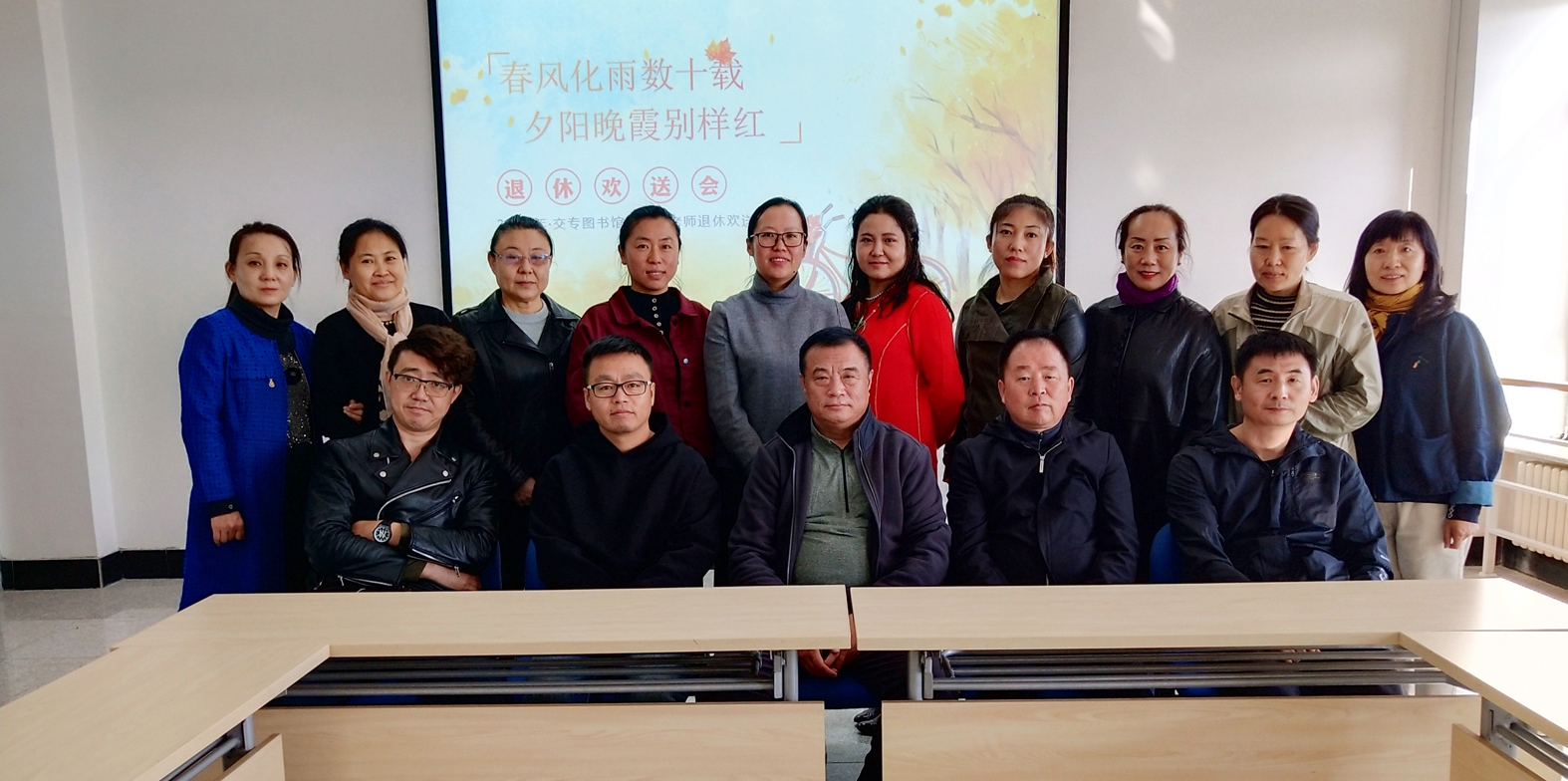 “春风化雨数十载,夕阳晚霞别样红”,2020年10月14日上午10:00,在图书馆509多功能会议室有欢笑、有感激、有不舍,我们正在为杨晓冬老师举行简单而温馨的退休欢送会。欢送会由校工会教辅分会主席马军主持。工会委员孙艳明老师代表校工会宣读学校致退休人员的一封信;马军主席代表工会赠送了退休人员纪念品;全体同事分别致辞留言;图书馆负责人王晓霞代表图书馆赠送了图书馆亲自制作的精美纪念相册;大家还争相与杨晓冬拍照留...