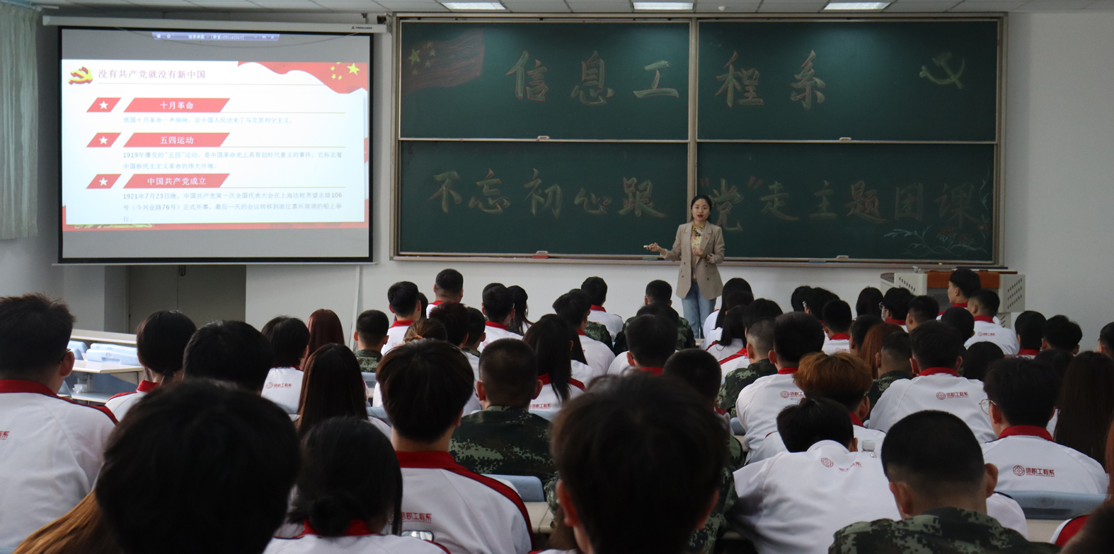 为响应校团委的号召,喜迎建党一百周年,引导本系团员青年更好地理解领悟党的初心使命,信息工程系团总支于5月11日,召开“不忘初心跟党走”主题团课活动。信息工程系团总支书记张琳老师,以建党百年历史为立足点,为本系团员青年讲述本次团课,引导广大团员青年从自身做起,结合实际,反思日常学习、生活,在团课中增强共青团工作的凝聚力和创造力。不忘初心跟党走,是共青团的永恒主题。中国共产党缔造并领导共青团,就是要通...