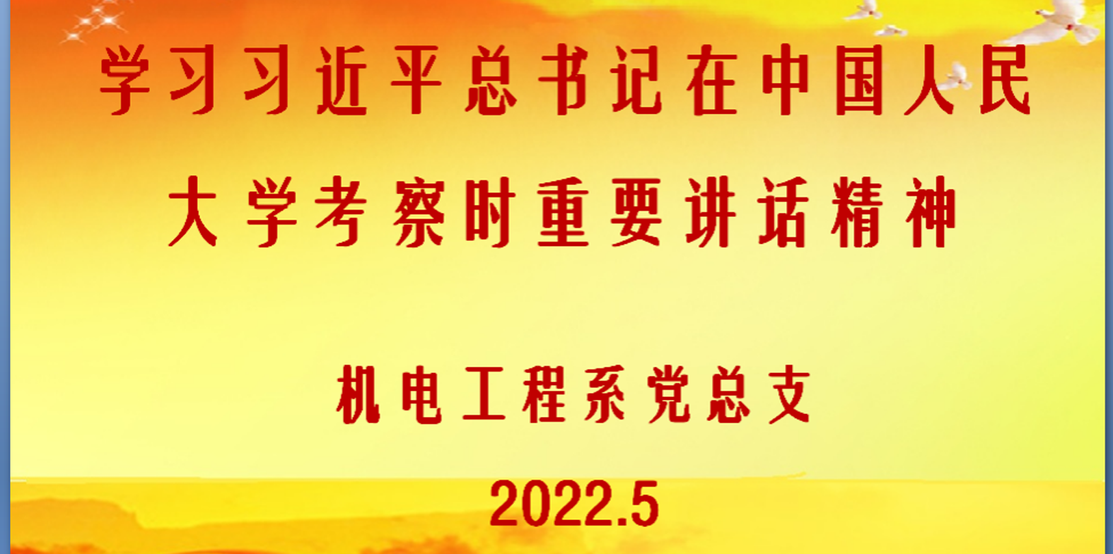 2022年5月3日下午,机电工程系党总支以腾讯会议形式组织开展了专题理论学习会议,深入学习贯彻习近平总书记在中国人民大学考察时重要讲话精神。会议由机电工程系党总支书记高洪波主持,全体党员参加了本次会议。首先,高洪波书记领学了习近平总书记在中国人民大学考察时重要讲话精神。在五四青年节即将到来之际,习近平总书记到中国人民大学考察,与师生面对面谈心并发表重要讲话,这充分体现了以习近平同志为核心的党中央对教...