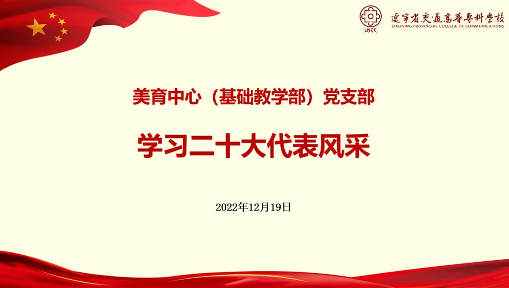 2022年12月19日下午,基础教学部党支部通过腾讯会议组织开展12月份主题党日活动,集中收看《二十大代表风采录》电视系列片,开展学习心得交流研讨。于丽妮、由丽丽、邢莉三位党员同志作了专题交流发言,党支部书记、主任王会江同志作总结发言。会议由党支部宣传委员张刚同志主持。全体党员首先集中收看了《二十大代表风采录》电视系列片,认真学习党的二十大代表立足本职岗位、敢于担当、开拓创新、敬业奉献的高尚品质和精神风...