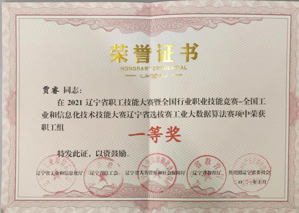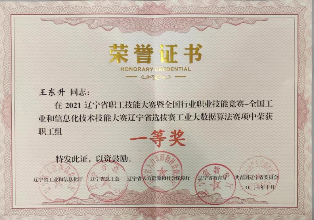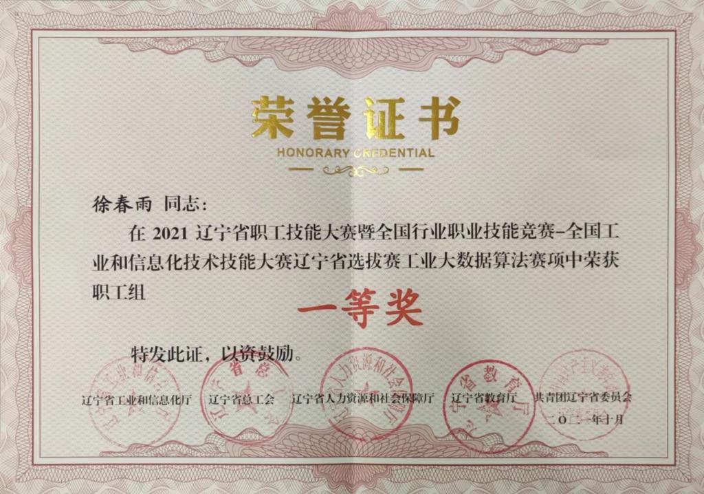 学校工会精心组织,信息系和机电系全力支持,经过多日的备赛与刻苦的训练,由我校信息系教师贾睿、徐春雨,机电系教师王东升组成的辽宁交专代表队经过两天的激烈角逐,凭借扎实的专业技能、过硬的心理素质,力压群芳,以团体总分第一名的成绩荣获工业大数据赛项一等奖。根据赛项奖励办法,原则上三位教师将被授予“辽宁省技术能手”荣誉称号,徐春雨老师以理论课第一名的成绩将被授予“辽宁五一劳动奖章” 荣誉称号。我校积极组织和参与比赛,且成绩突出,被授予该项赛事“冠军选手单位”荣誉称号。