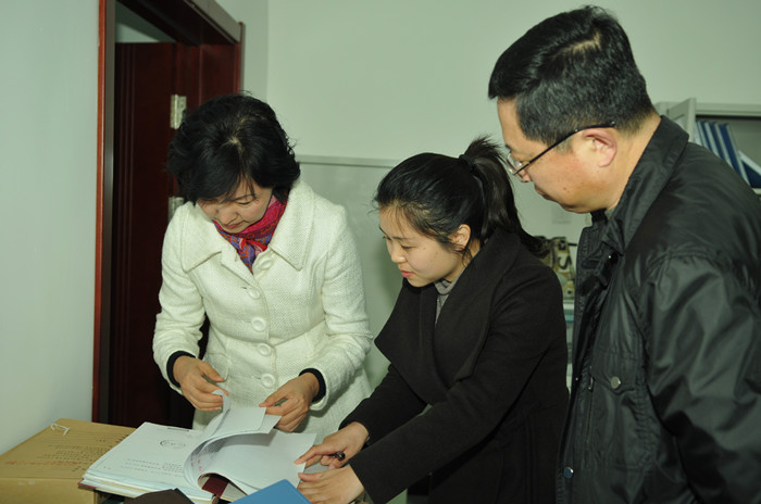 汇报会后,检查组一行在王春雷副校长及有关工作人员的陪同下实地检查了我校档案室的办公室、档案库房,调阅了各类档案卷宗和资料,重点查阅了近年来基本建设档案。