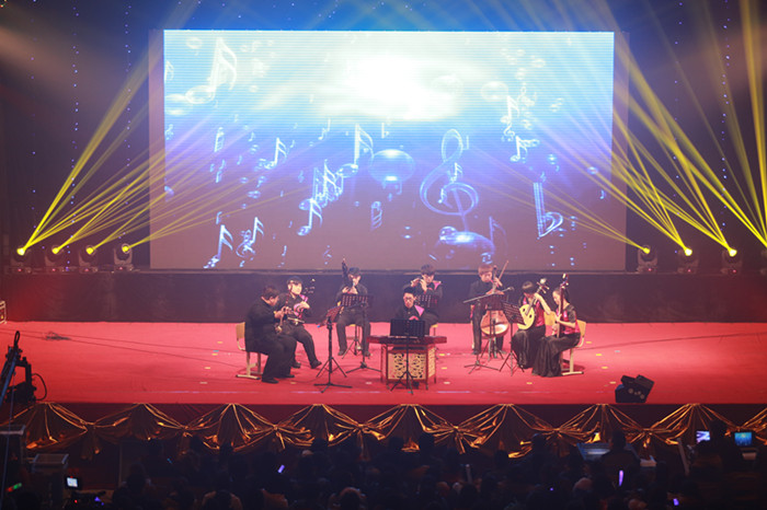 载歌载舞辞旧岁,祥和欢乐迎新年。2012年12月28日,我校迎新年联欢晚会在礼堂举行,学校领导、师生员工共1200余人欢聚一堂,共庆佳节。 联欢晚会上,党委副书记岳贵鑫同志致新年贺词,代表学校党政领导班子向全校教职员工和同学们,致以节日的问候和新年的祝福。他在讲话中回顾了2012年学校高职教育事业取得的显著成绩,并展望了学校未来发展的美好前景。 联欢晚会在幼儿园小朋友表演的舞蹈《赛马》中拉开了帷幕。整场晚会流行与民族兼收,温情与火热并重,舞蹈、诗朗诵、民乐演奏、健美操、合唱等节目精彩纷呈,给人以美的享受。诗朗诵《唱响心中的歌》、歌曲联唱《最初的梦想》、《水手》、《真心英雄》等,抒发了我校教职员工为实现国家高职名校建设目标,脚踏实地、努力工作、开拓进取的奉献精神;舞蹈《弯弯的月亮》、健美操《青春节拍》、歌伴舞《鸿雁》等节目动感十足、青春洋溢,展现了交专学子刻苦学习、拼搏进取的良好精神风貌。 最后,合唱《跨越》、《走向复兴》将整场晚会推向了高潮。 近两小时的晚会,全校师生员工用特有的方式,展现了自己的风采,表达新年祝愿,寄予了美好希望。展现了全体师生员工在学校党委的领导下,全面落实党的十八大精神,与时俱进、开拓创新,推动学校高职教育事业不断发展的进取精神。 晚会开幕 诗朗诵《唱响心中的歌》 舞蹈《弯弯的月亮》 民乐演奏