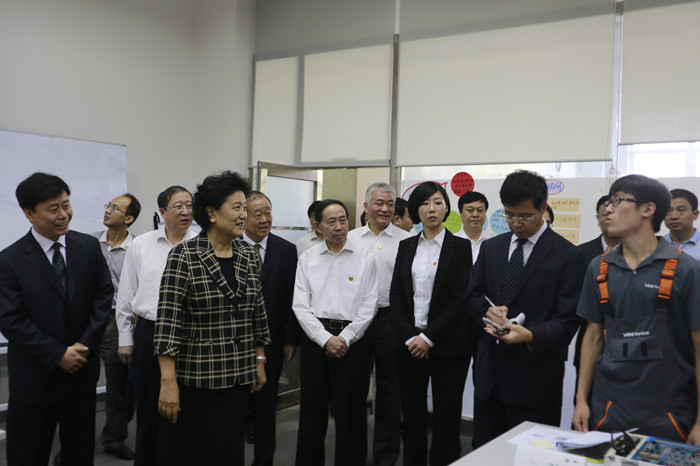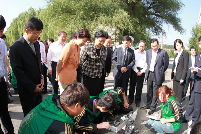 刘延东副总理一行首先来到道桥系室外橱窗前,张亚军校长结合学校办学特色,对学校概况作了简要介绍。随后,刘延东副总理来到道桥室外综合实训场地,与师生亲切交谈,并观看了学生现场路面实验。看到同学们协作互助、娴熟的实验操作过程,刘延东副总理赞许道,你们做的很专业、很好。在道桥检测实验室,刘延东副总理饶有兴趣的观看了学生的材料试验和公路工程试验检测中心技术人员的桥梁固有频率测试、水泥耐久性检测试验。 省交通厅刘焕鑫厅长介绍说,学校的公路工程试验检测中心直接为辽宁公路建设服务,为施工单位服务,为我们的决策提供了科学准确的数据和技术,该中心还承担了鸭绿江界河大桥的技术支持工作。刘延东副总理听到后高兴地说,这是服务辽宁交通事业发展的一个重要平台,学校紧密结合交通建设实际,积极开展技术服务和技术研发应用,直接服务于地方交通建设和发展,这是学校紧紧依托行业办学、行业积极支持学校发展的生动体现。 在汽车系实训中心沈阳宝马培训基地,刘延东副总理与正在接受培训的技术人员进行了亲切交谈。刘焕鑫厅长介绍说,汽车系坚持校企合作、工学结合的办学模式,培养的学生供不应求,就业率连续多年都在97%以上,除个人原因以外都能就业。刘延东赞许道,很好,高等职业教育一定要为培养高素质劳动者、专业技术技能人才服务,以服务彰显价值、增强吸引力、提升办学声誉。 考察结束后,刘延东副总理作了重要讲话。她强调了职业教育服务经济、服务民生、服务社会的目标。教育改革要调整教育结构,要实现为推进新型工业化、信息化、城镇化和农业现代化,实现“四化”同步发展,培养高素质劳动者和专门的技术服务人才的目标。 刘延东副总理对我校办学给予了高度评价。她说,今后职业教育应是金字塔型结构,作为高专,在金字塔上端,不仅要培养高素质、技能型人才,更应直接为社会行业服务,我觉得这方面学校做的很好,职业教育大有可为。辽宁省很重视,学校要为社会多做贡献,思路要更开阔一些,希望你们继续探索。教师队伍建设要吸引社会各方面人才,直接服务职业教育。你们现在确实已经办得很好,你们还得再加把劲,争取做出更大贡献,做得更好。 最后,刘延东副总理说,你们一定要继续努力,条件这么好,要再上一层。刘延东副总理预祝全校师生中秋节快乐! 与学生亲切交谈 观看学生现场路面实验
