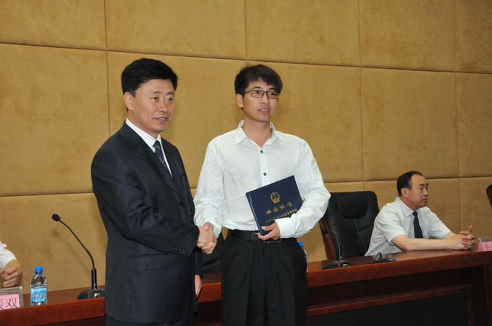 校长张亚军为毕业生代表颁发毕业证书