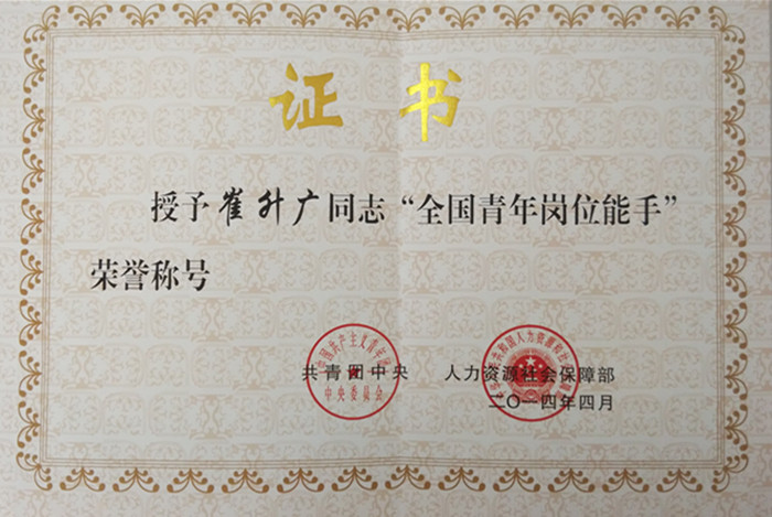 近日,由团中央、人力资源和社会保障部举办的第九届“振兴杯”全国青年职业技能大赛决赛成绩公布,我校信息工程系崔升广老师荣获“全国青年岗位能手”荣誉称号。