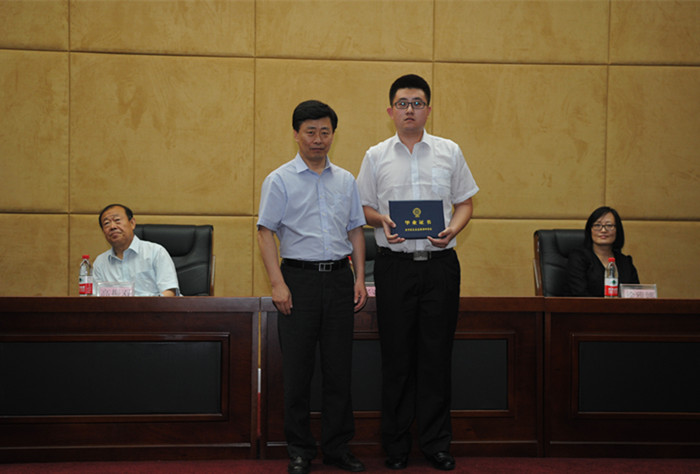 岳贵鑫副书记宣布了获得“2014年度辽宁省高校优秀毕业生党员”、“ 2014届学校优秀毕业生党员”、“2014年辽宁省普通高等学校优秀毕业生”、“2014届学校优秀毕业生”名单,学校领导为获得荣誉称号的毕业生颁发了荣誉证书。