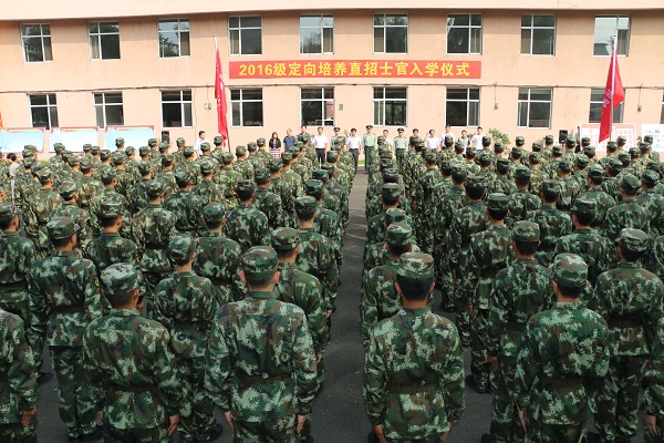 2016年9月9日下午,我校2016级定向培养直招士官入学仪式在学校士官公寓楼前举行。辽宁武警总队何利参谋长、警务处李玉涛处长、曲福来副处长,学校张亚军校长、岳贵鑫副书记、栾林处长、穆学君处长、相关系书记等以及全体士官生参加了入学仪式。仪式由岳贵鑫副书记主持。