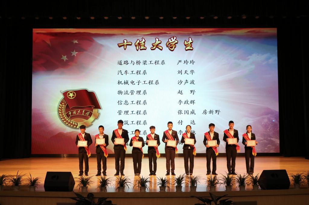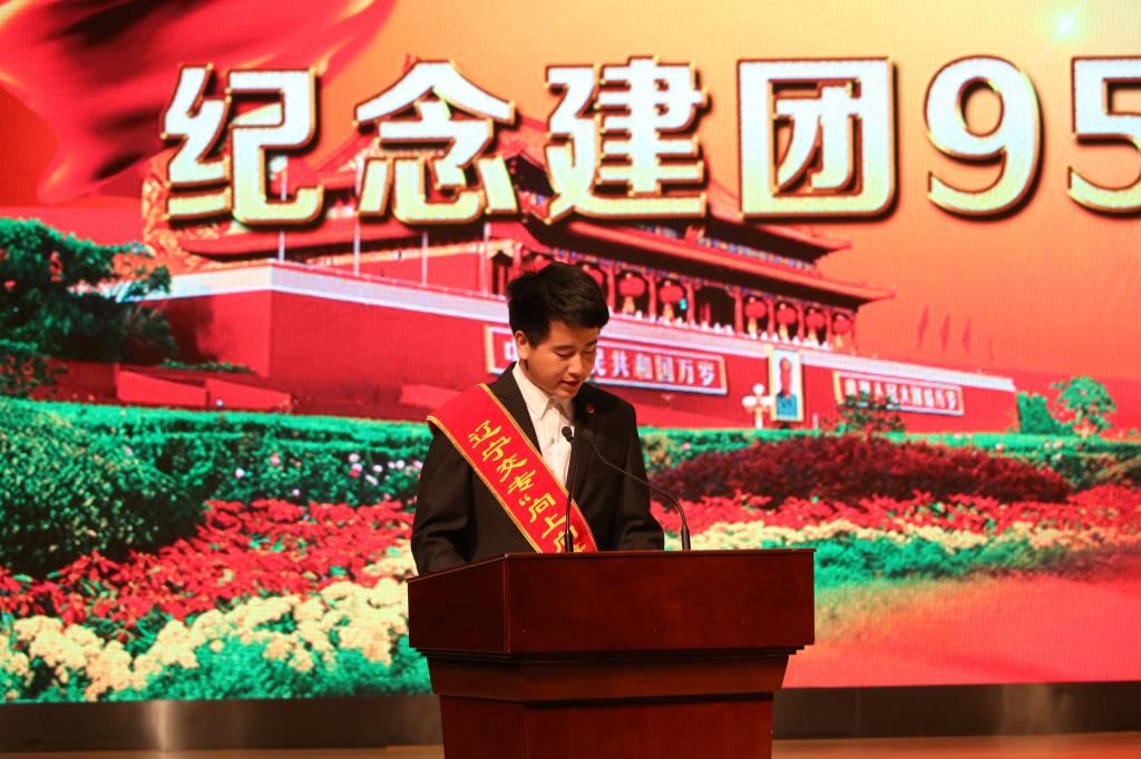 会上,我校2017年44名新团员举行了庄严的入团宣誓仪式,全场老团员重温入团誓词。团委书记郑海超宣读了《关于KYTY.COM开云体育(中国)科技公司2016-2017年度“五四”先进表彰的决定》,本年度共有79个先进集体和1095名先进个人受到表彰。与会领导为受表彰的先进集体和个人颁奖。大会对十佳大学生和十佳团学干部获奖者的先进事迹进行了一一介绍,使全体与会同学更直观的感受到“身边榜样”的力量。第十一届校传媒中心主席史翔宇同学代表全体获奖者发言,他号召团体青年再接再厉高举五四的旗帜,以饱满的热情,蓬勃的姿态,锐意进取,不断进步,树立正确的世界观、人生观、价值观,努力培养良好的品德,提高综合素质,做有益于祖国和人民的人,为中华民族的伟大复兴贡献力量。