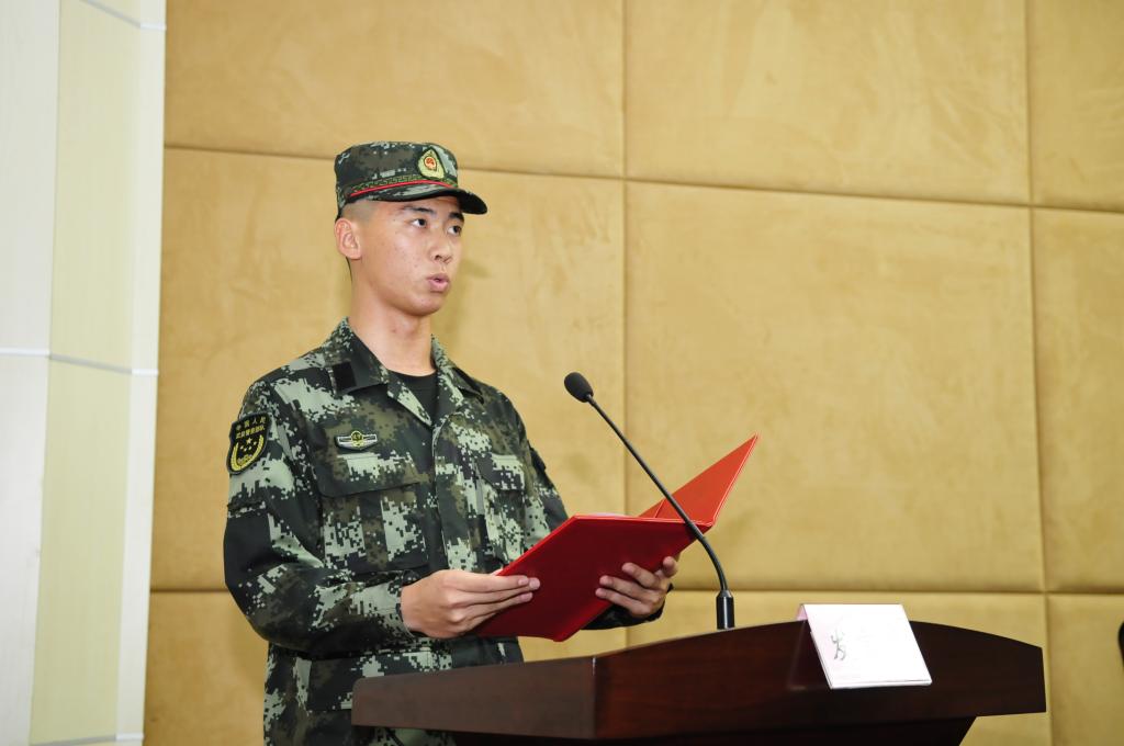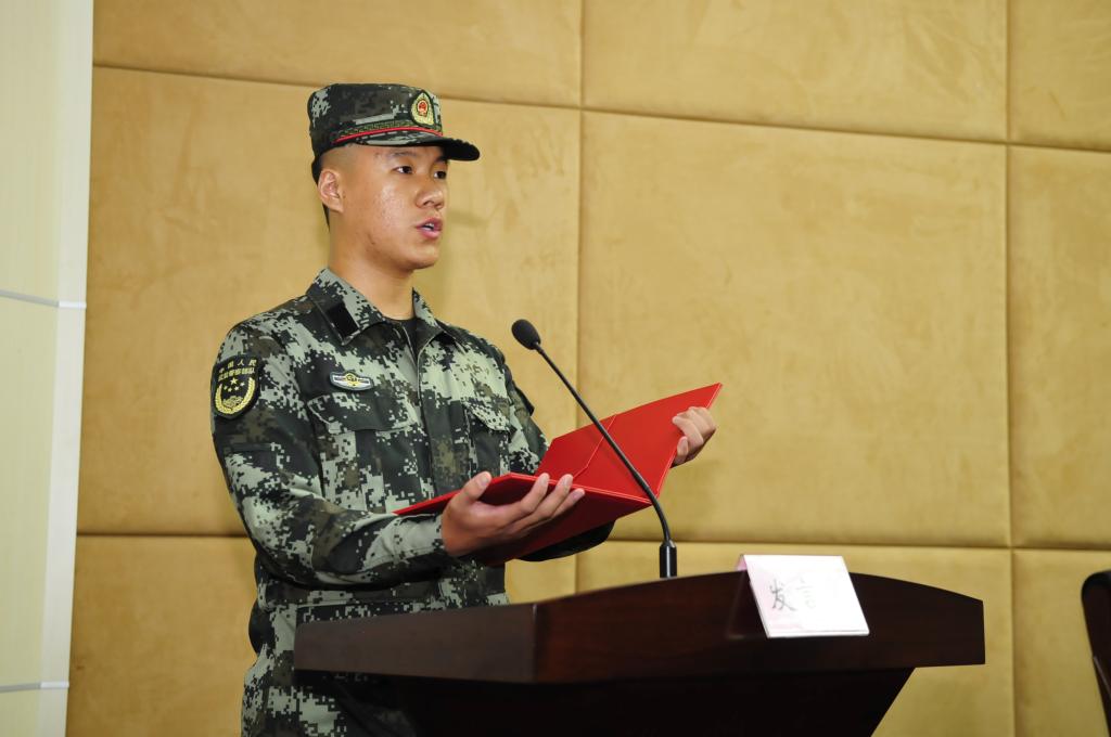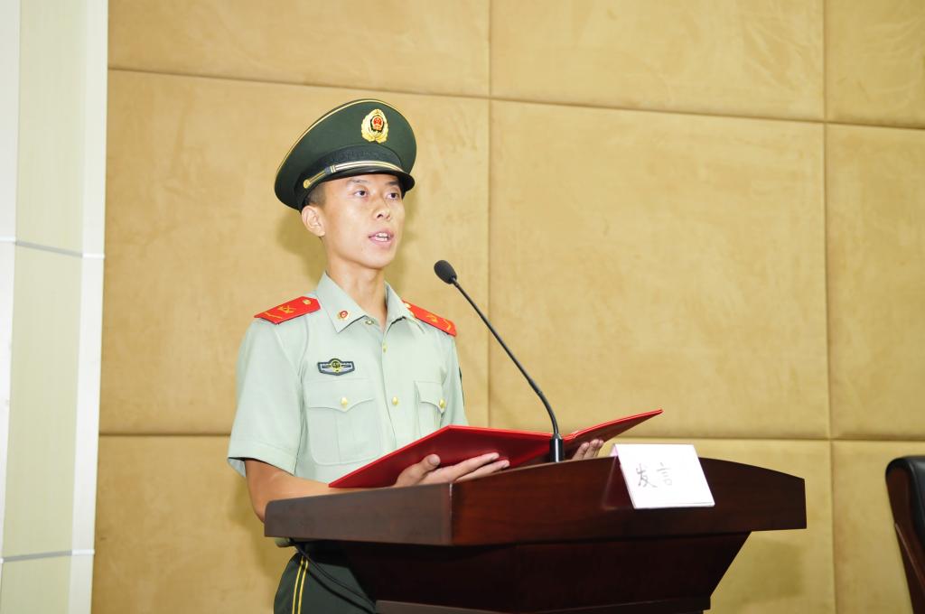 首先陈冠霖、张原海分别代表16级、17级士官班学生进行了发言,并表示在集训中严格遵守各项管理规定,做到服从命令,虚心请教,团结战友,意志坚定,认真训练、刻苦专研,为成为一名合格的武警战士奠定坚实的基础。其次,执勤支队班长贾洪振代表集训教官进行发言,他表示一定以身作则,认真履行一名教练员应尽的责任,发扬精神,让同学们在此次集训中有所收获,提高军事素质,磨砺意志品质。