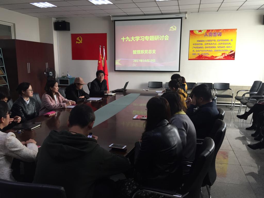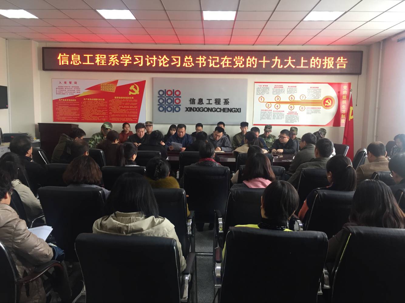 10月19日上午,学校党委理论中心组和全校11个基层党总支,12个直属党支部全部召开专题会议,认真学习习近平总书记十九大报告,热议感想畅谈体会。