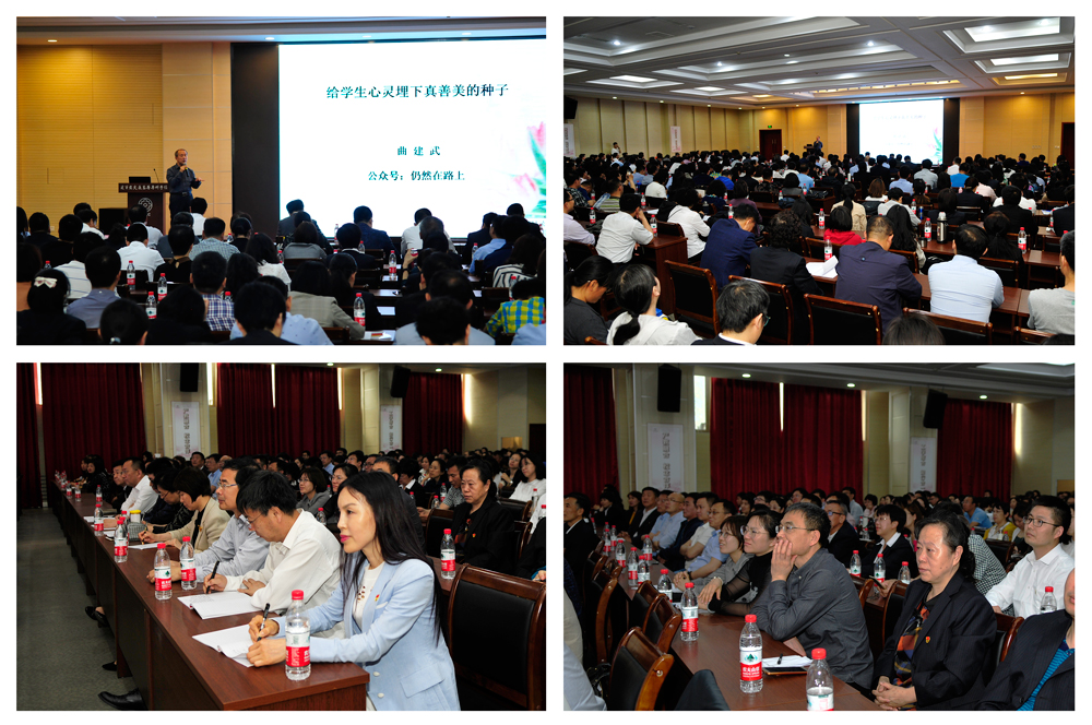 曲建武教授的报告以《给学生心灵埋下真善美的种子》为题,围绕习近平总书记在学校思想政治理论课教师座谈会上的重要讲话精神,从“政治要强、情怀要深、思维要新、视野要广、自律要严、人格要正”六个方面深刻阐述了当代大学生思想政治教育工作的神圣使命和重要价值。结合个人30多年的从教经历,曲建武教授用详实生动的案例和率真风趣的语言,饱含深情地讲述了他担任一线辅导员的心得体会,分享了他从事思想政治教育工作的经验思考。“老师的幸福感来自于学生”、“一生即便一无所有,有了学生便有了一切”“祖国的事你管,你家的事我管”……一句句暖心话语,一个个感人故事,彰显了曲建武教授甘为人梯、无私奉献的人格魅力,诠释了他作为高校教育工作者铸魂育人、立德树人的教育情怀。全场教师不仅被曲教授对教育事业的执着坚守所感动,更被他“心怀祖国、心有大爱”的崇高境界所敬佩,会场内不时响起热烈的掌声。