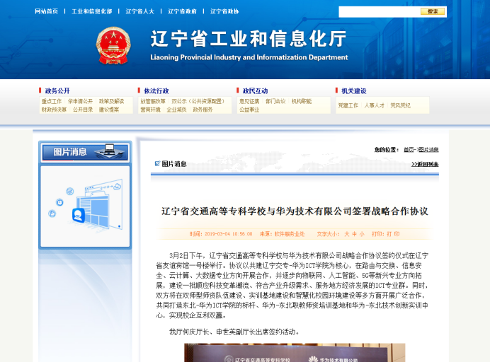 5.2019年3月4日,辽宁省工信厅官方网站《图片消息》栏目: