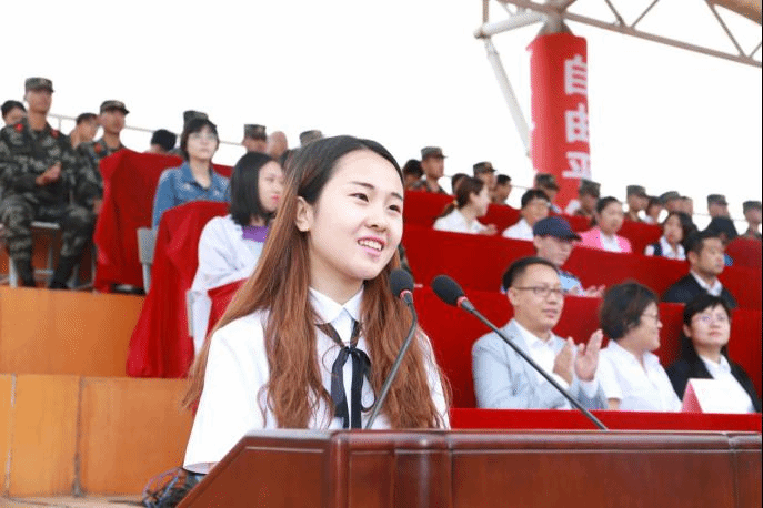 2019级武警士官生,汽车系张天宝同学代表全体新生表决心。热爱中国共产党,热爱社会主义,热爱国防,军训期间严格遵守军队条例和规章制度,尊重教官,听从指挥! 铭记祖国赋予的荣耀,铭记父母寄予的厚望,铭记恩师赐予的教诲,铭记新时代大学生的光荣使命,在学校“厚德 笃学 实践 创新”的校训和“脚踏实地 追求卓越”的学校精神指引下,圆满完成军训任务,将自己培养成为德智体美劳全面发展的新时代大学生。